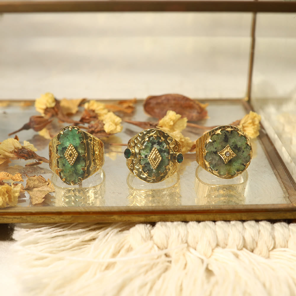 Olivenorma's Turquoise Ring is a symbol of cultural elegance and versatility. This unique ring showcases the beauty of African Turquoise in a design that adapts to your finger's size comfortably. The vibrant colors and patterns evoke the essence of African culture, making it a meaningful and stylish accessory. Embrace the rich heritage and elevate your style with this stunning ring.