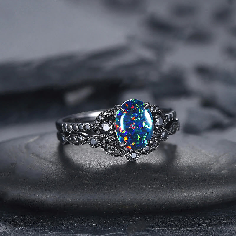 - Name: Olivenorma 2Pcs Oval Shape Black Fire Opal Engagement Ring Set