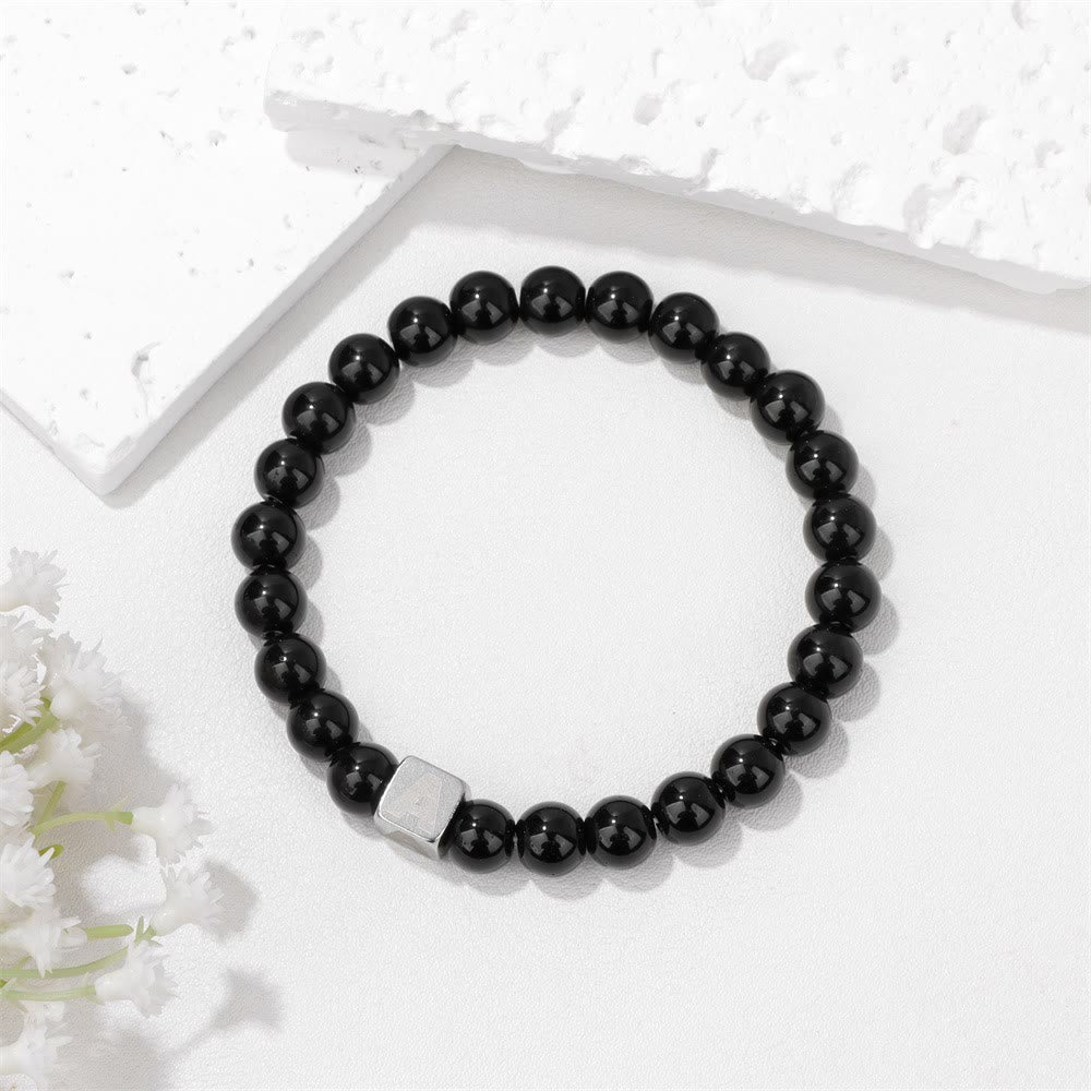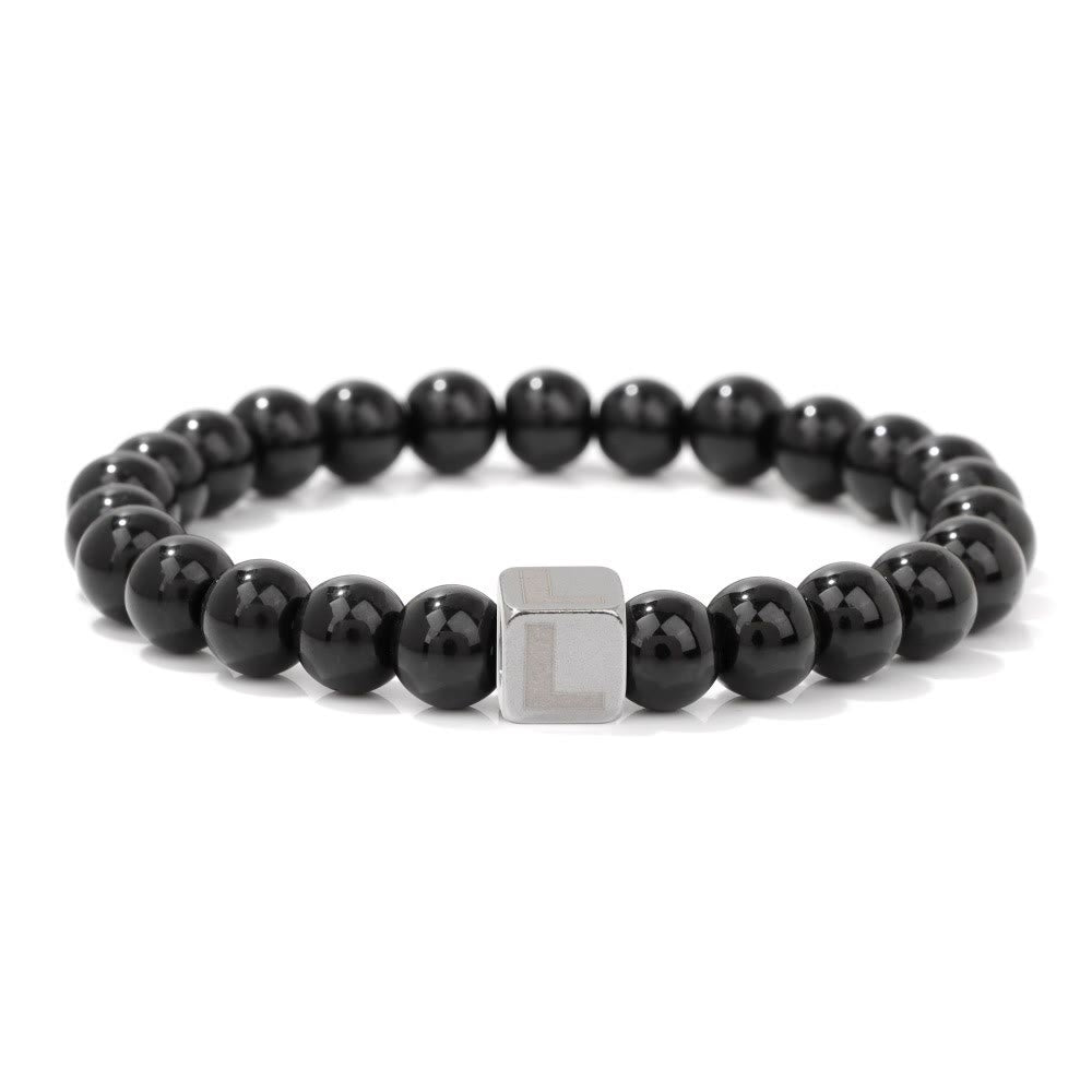 - Name: Olivenorma 8mm Initial Cube Obsidian Beaded Bracelet