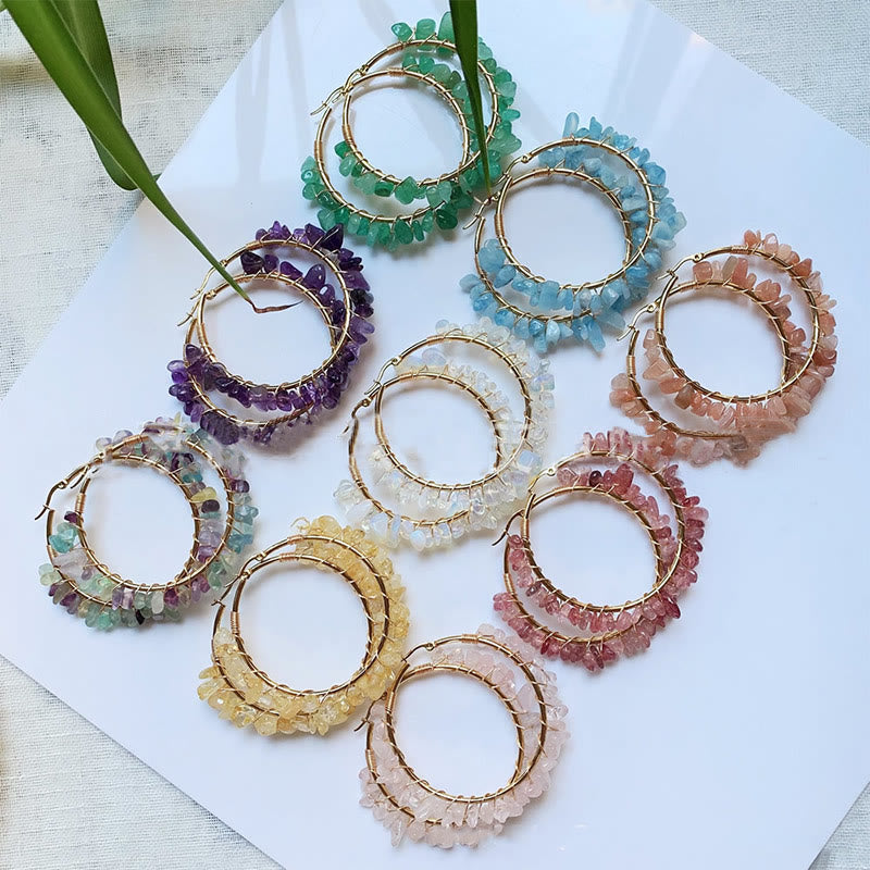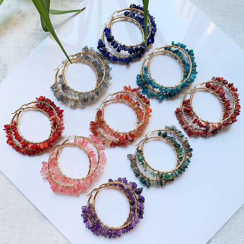 - Name:Olivenorma Bohemian Style Natural Stone Crystal Large Hoop Earrings