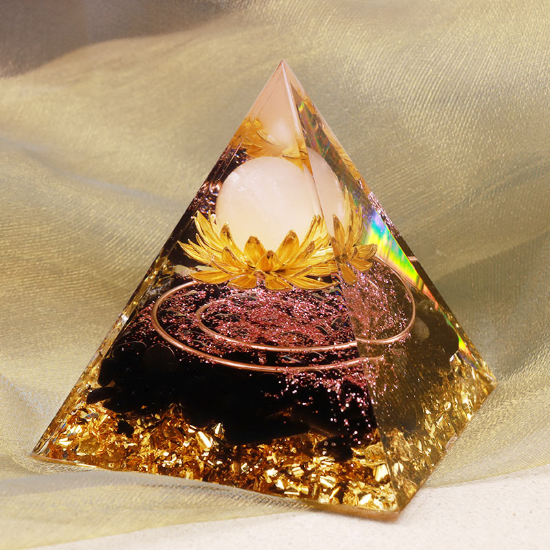 • Name: Olivenorma Clear Crystal Obsidia Lotus Symbol Orgone Pyramid