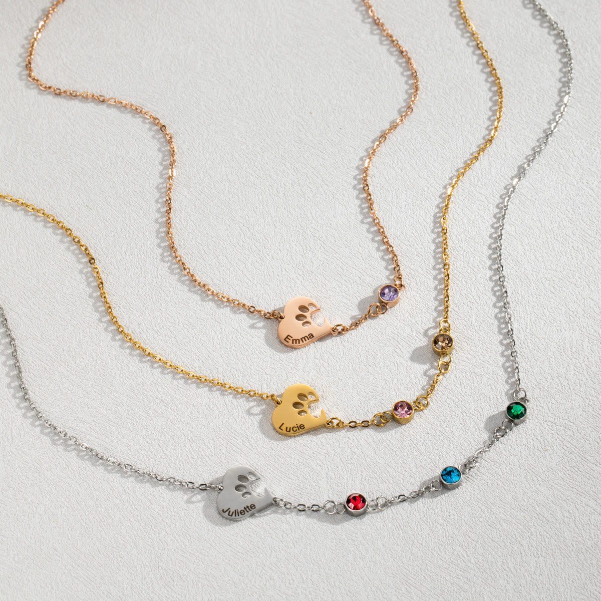 - Name: Olivenorma Custom Hollow Heart Dog Paw Birthstone Necklace