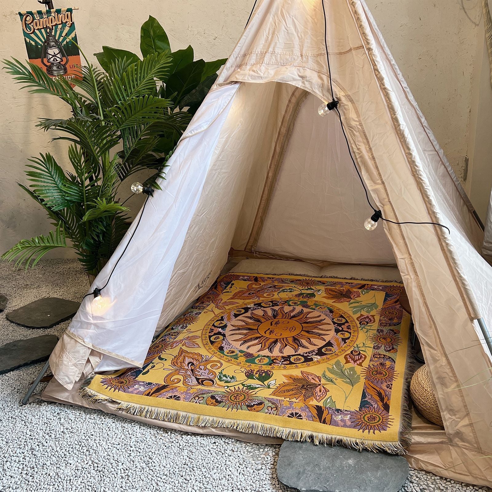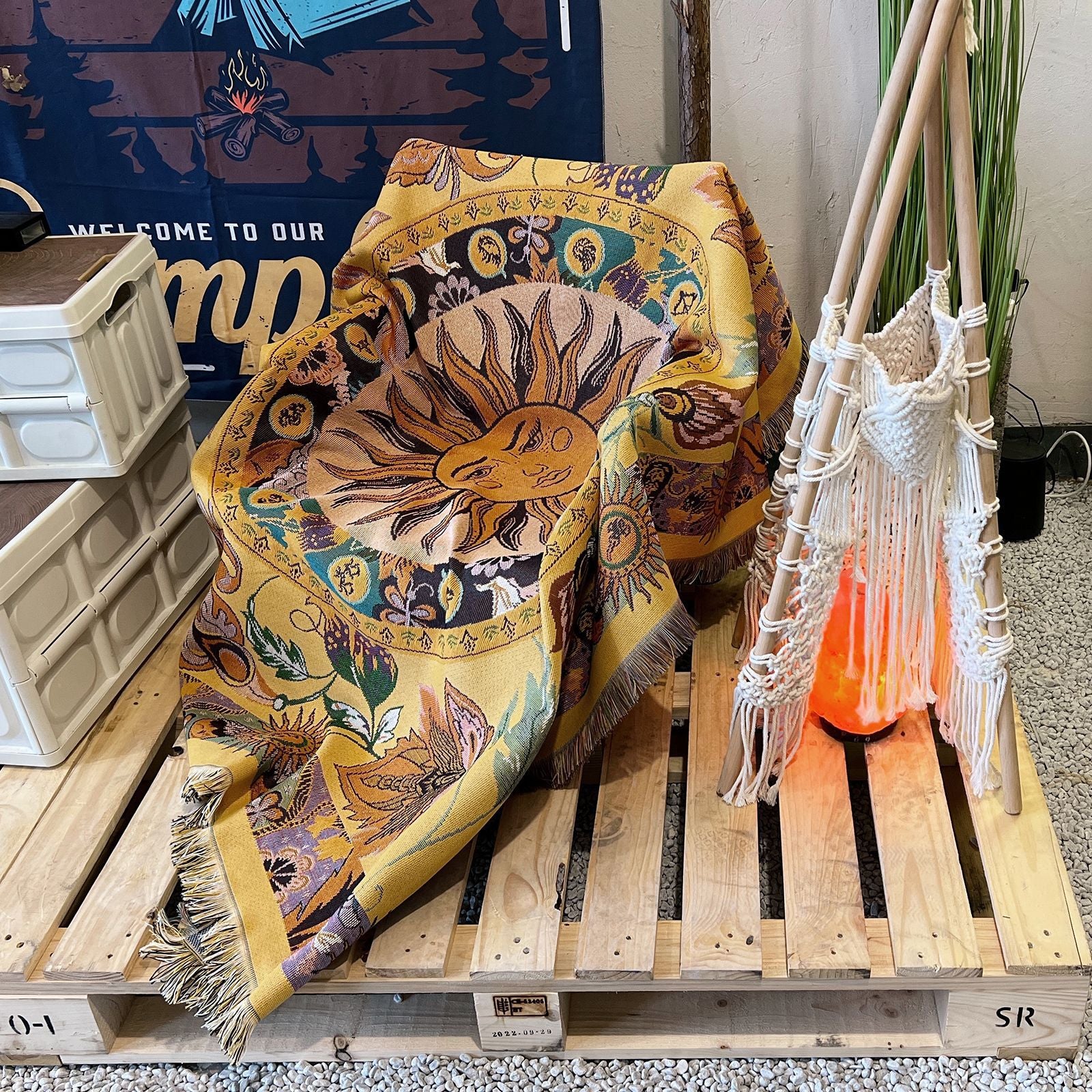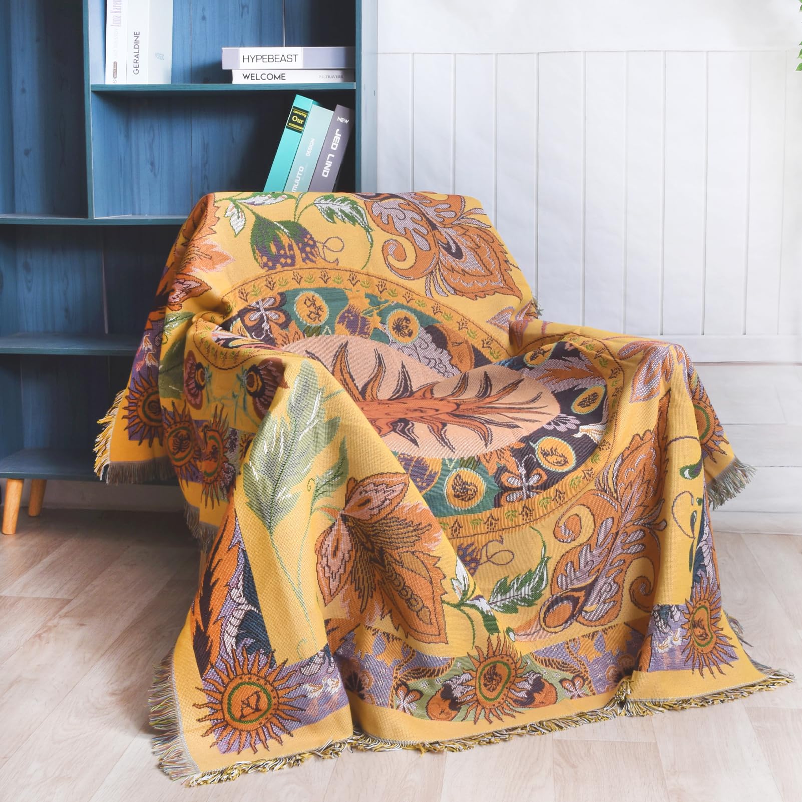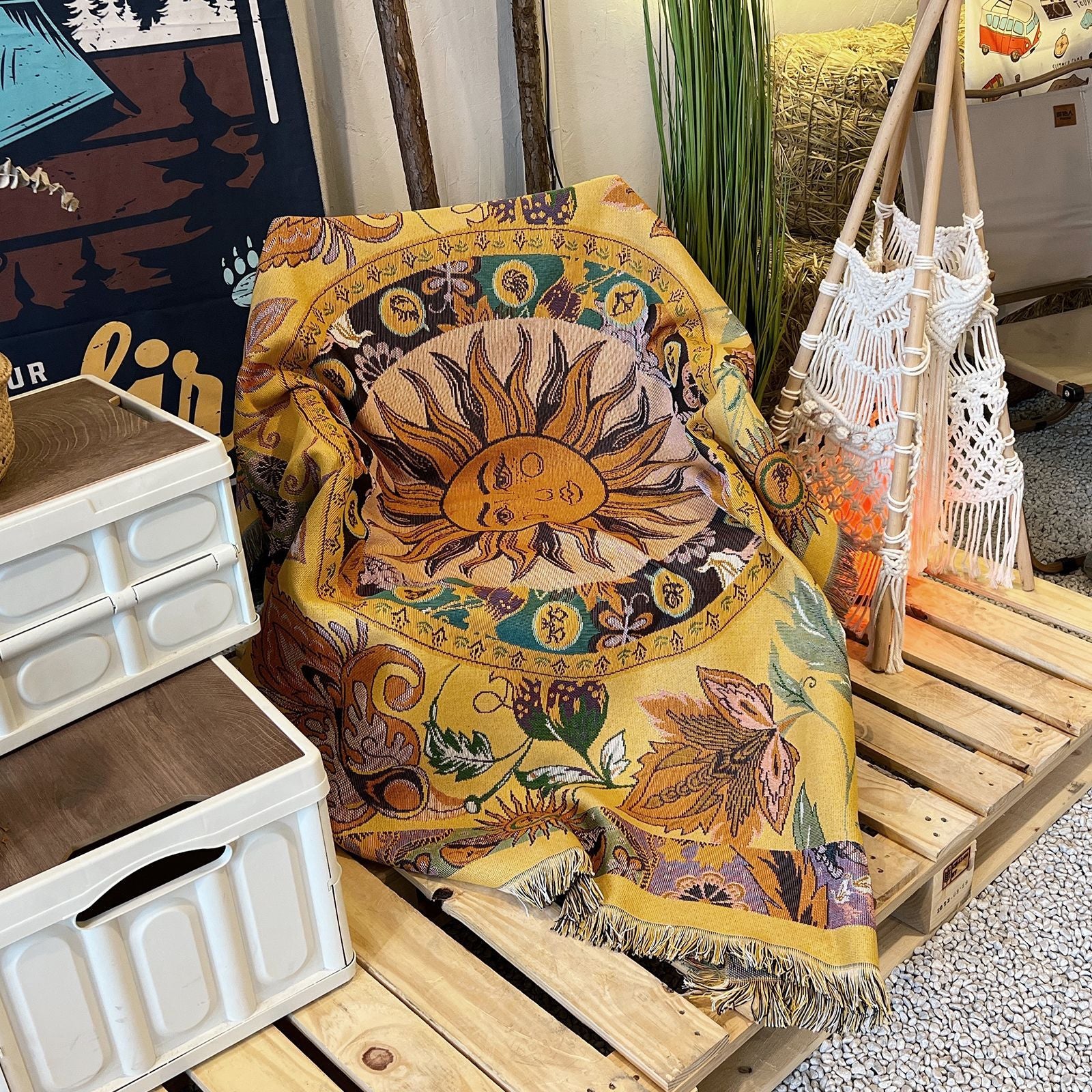 - Design: Golden Sun Mood Face Yellow Bohemian Tapestry Blanket.Carefully woven to ensure softness, rich texture and durability. Beautiful patterns can not only decorate the home well, but also show your extraordinary taste.The pattern jacquard throw blanket add a hippie room decor, brightens up your sofa or furniture and even as blanket for couch protection.