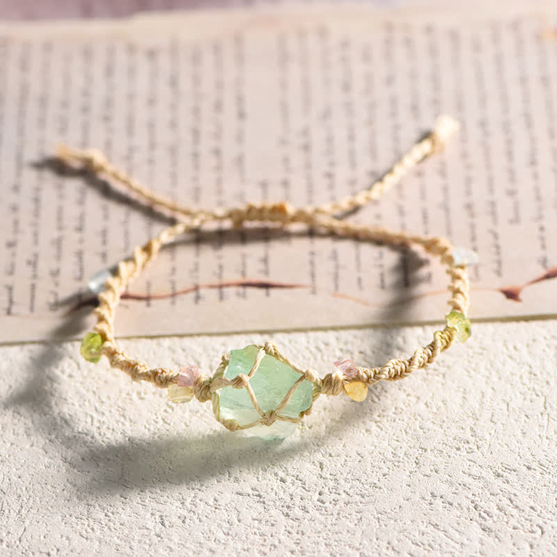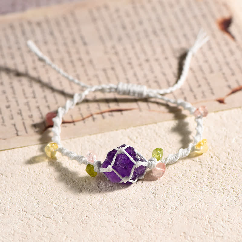 Natural Crystal Braided Flower bracelet features a hand-braided cord adorned with a singular crystal centerpiece, symbolizing purity and serenity. This meaningful piece represents nature’s harmony, with the crystal offering soothing energy for emotional healing. The intricate floral-inspired design celebrates natural beauty, creating a calming presence that encourages mindfulness and a sense of peace.