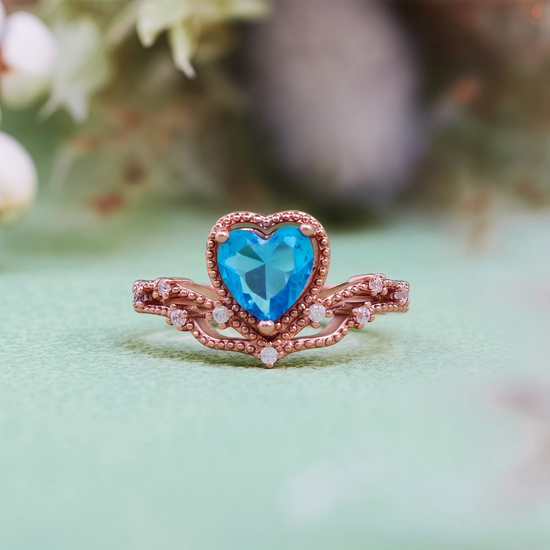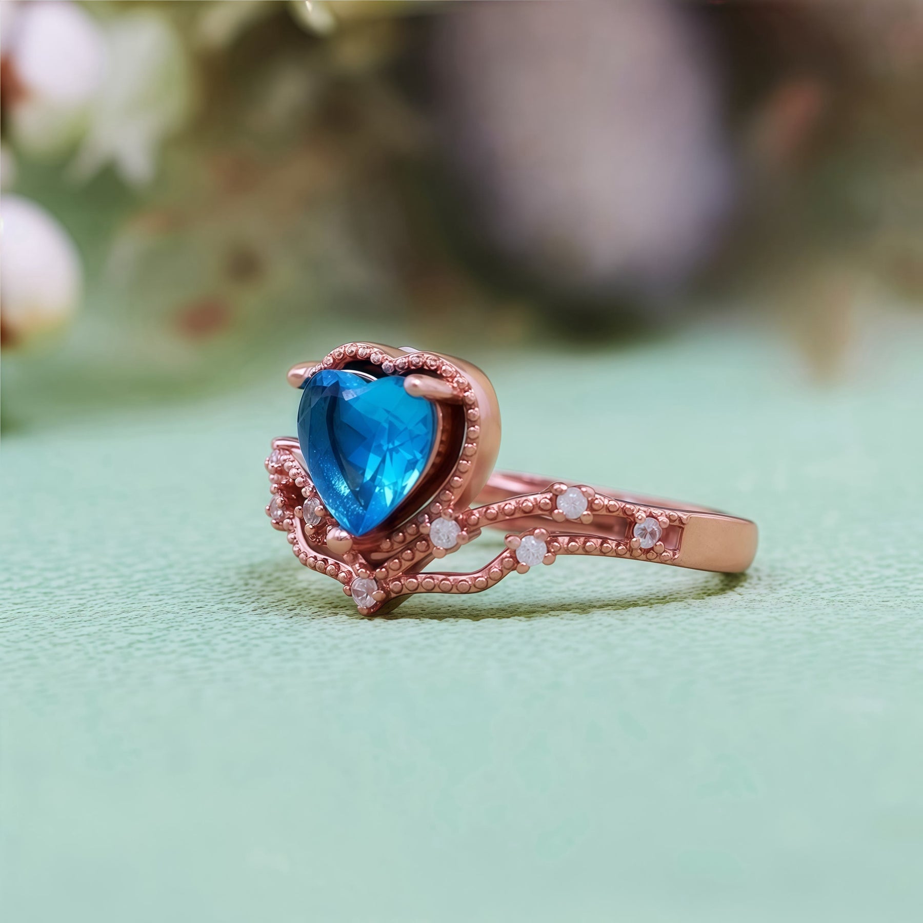 - Name: Olivenorma Heart Shape Blue Topaz Crown Shape Ring