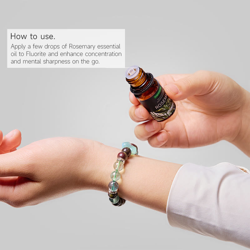 How to Use: Apply a few drops of Rosemary essential oil to Fluorite and enhance concentration and mental sharpness on the go.