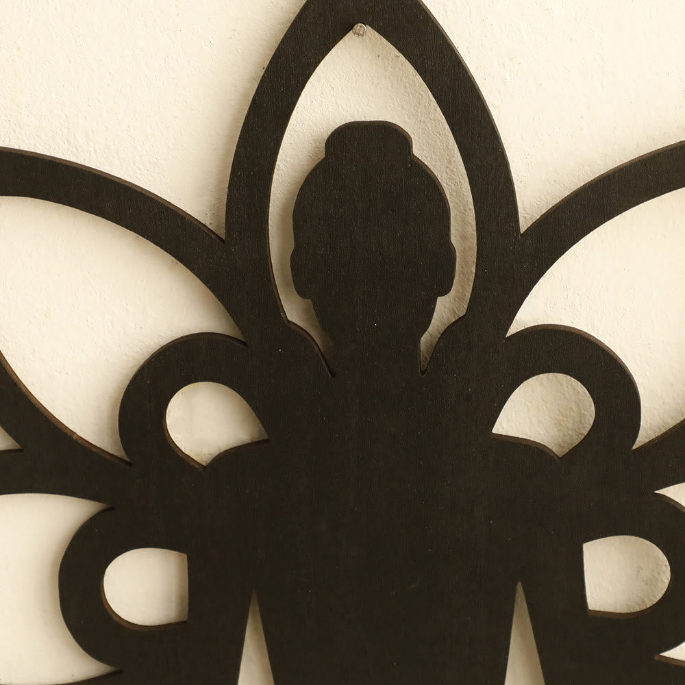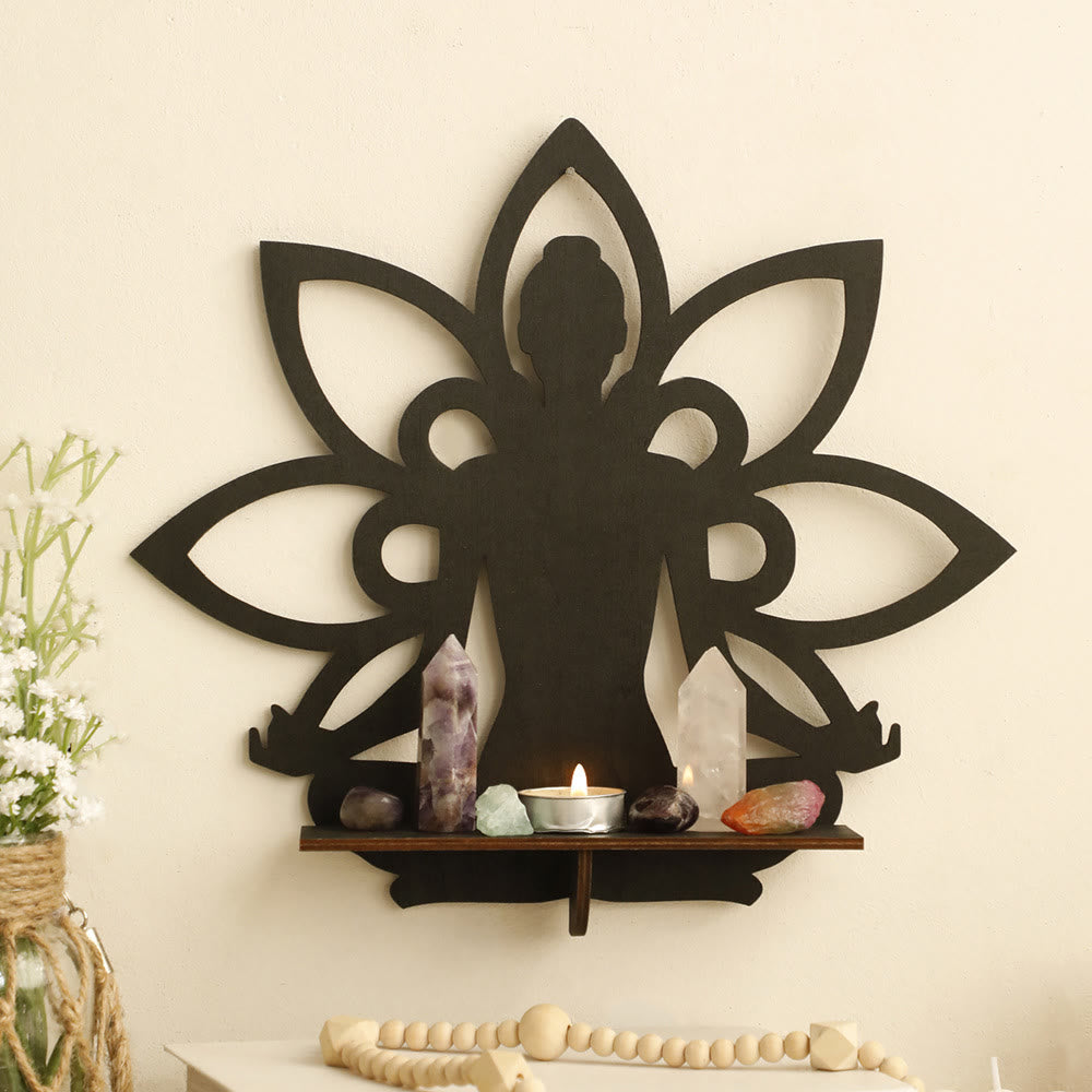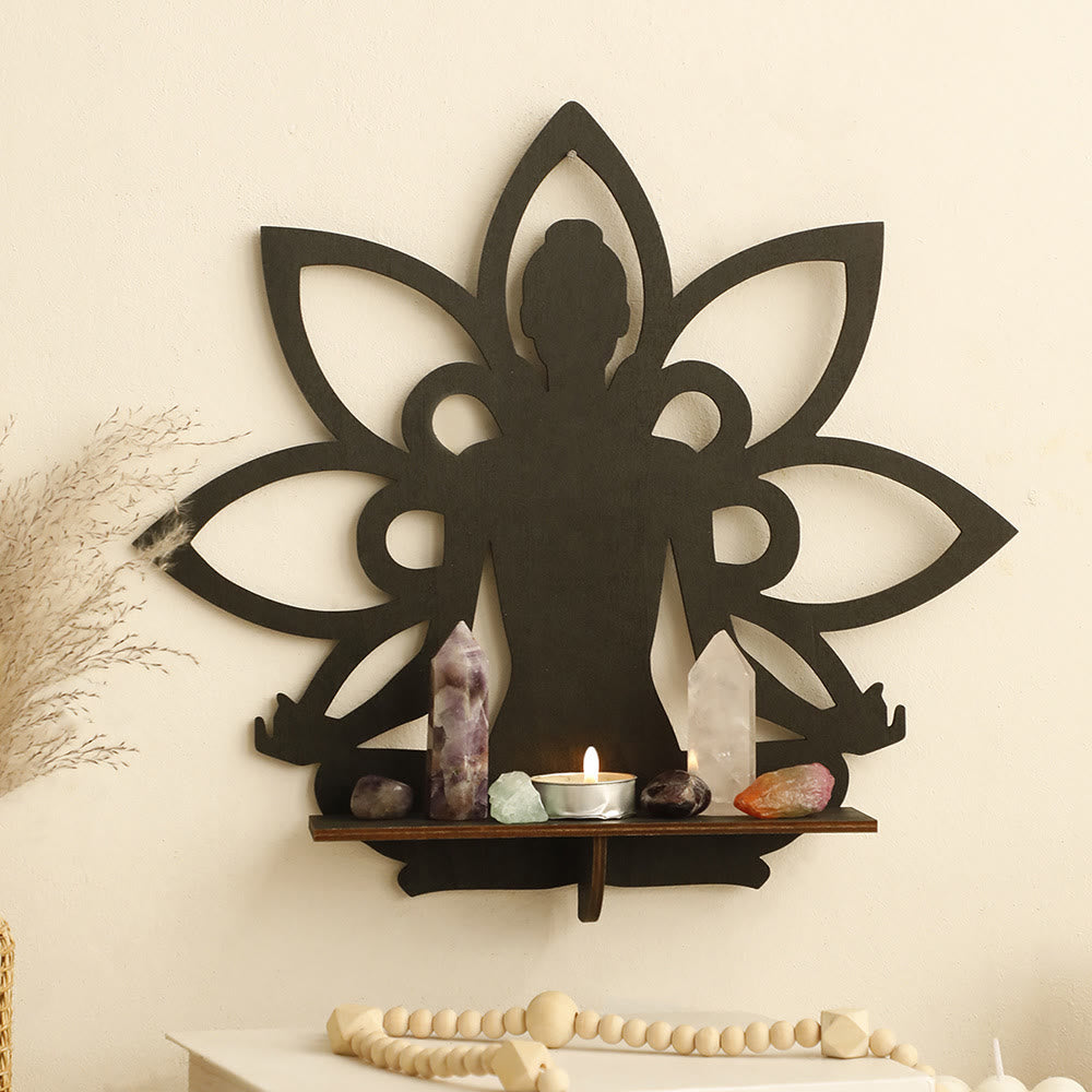 Olivenorma Meditation Lotus Flower Buddha Wooden Crystal Shelf