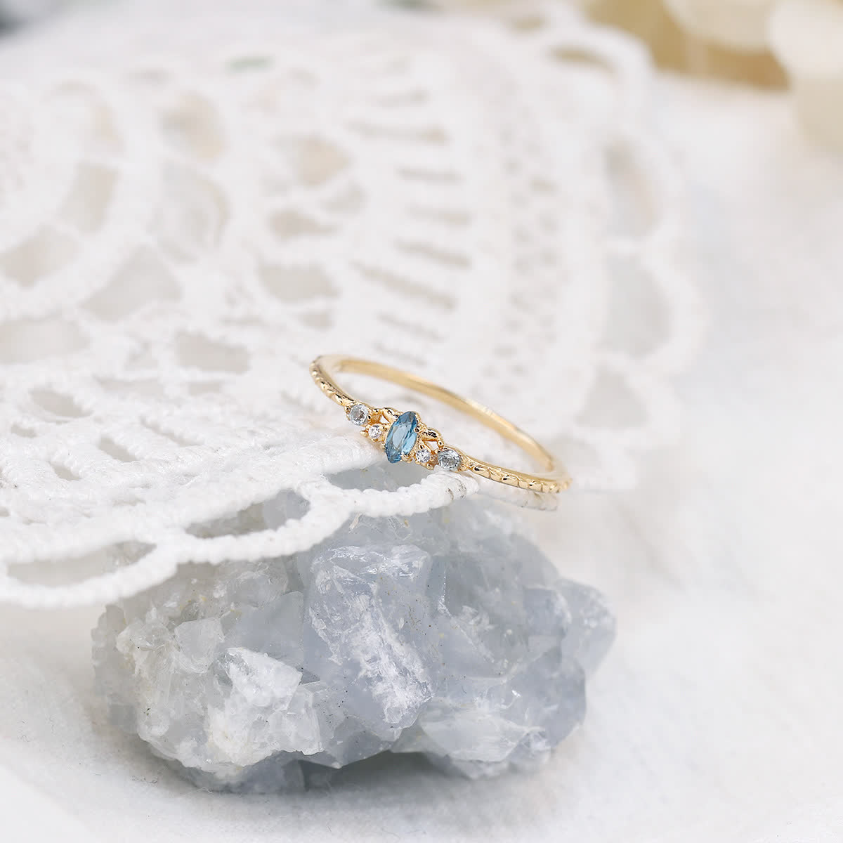 Blue Topaz Horse Eye ring showcases a stunning horse-eye-shaped blue topaz set in a durable band, symbolizing clarity and foresight. The topaz is known for promoting emotional balance and strengthening intuition. Its unique design highlights personal growth and the pursuit of wisdom. Crafted with precision, this ring serves as a powerful reminder of spiritual connection and the ability to navigate life with inner peace and purpose.
