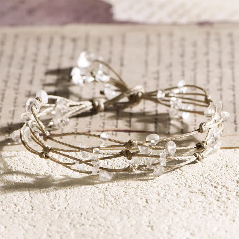 Natural Crushed Crystal Braided Flower bracelet showcases a handwoven cord embellished with delicate fragments of crystals, representing purity and balance. Each crystal shard reflects the raw beauty of nature, promoting emotional clarity and grounding energy. The floral-inspired design adds symbolic depth, making it a meaningful piece to encourage mindfulness and a sense of harmony in daily life.