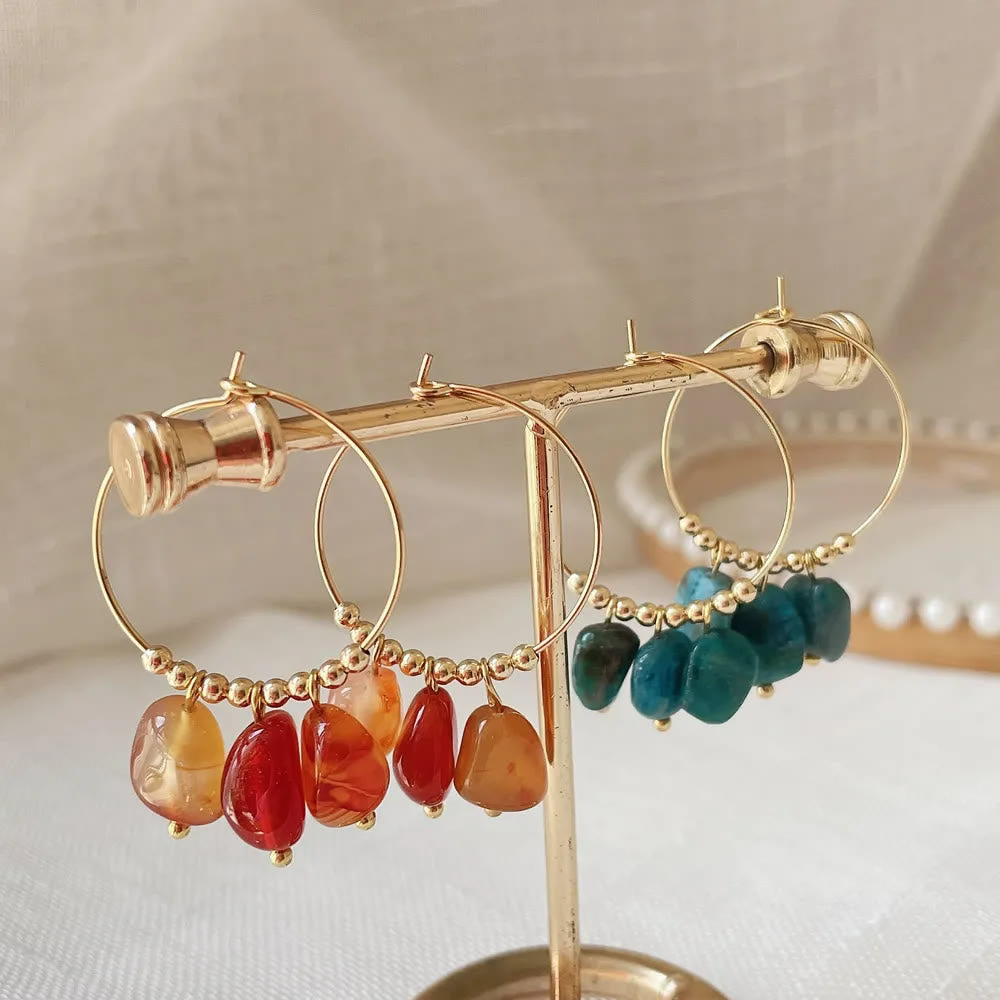 • Name:Olivenorma Natural Crushed Crystal Pendant Titanium Steel Earrings
