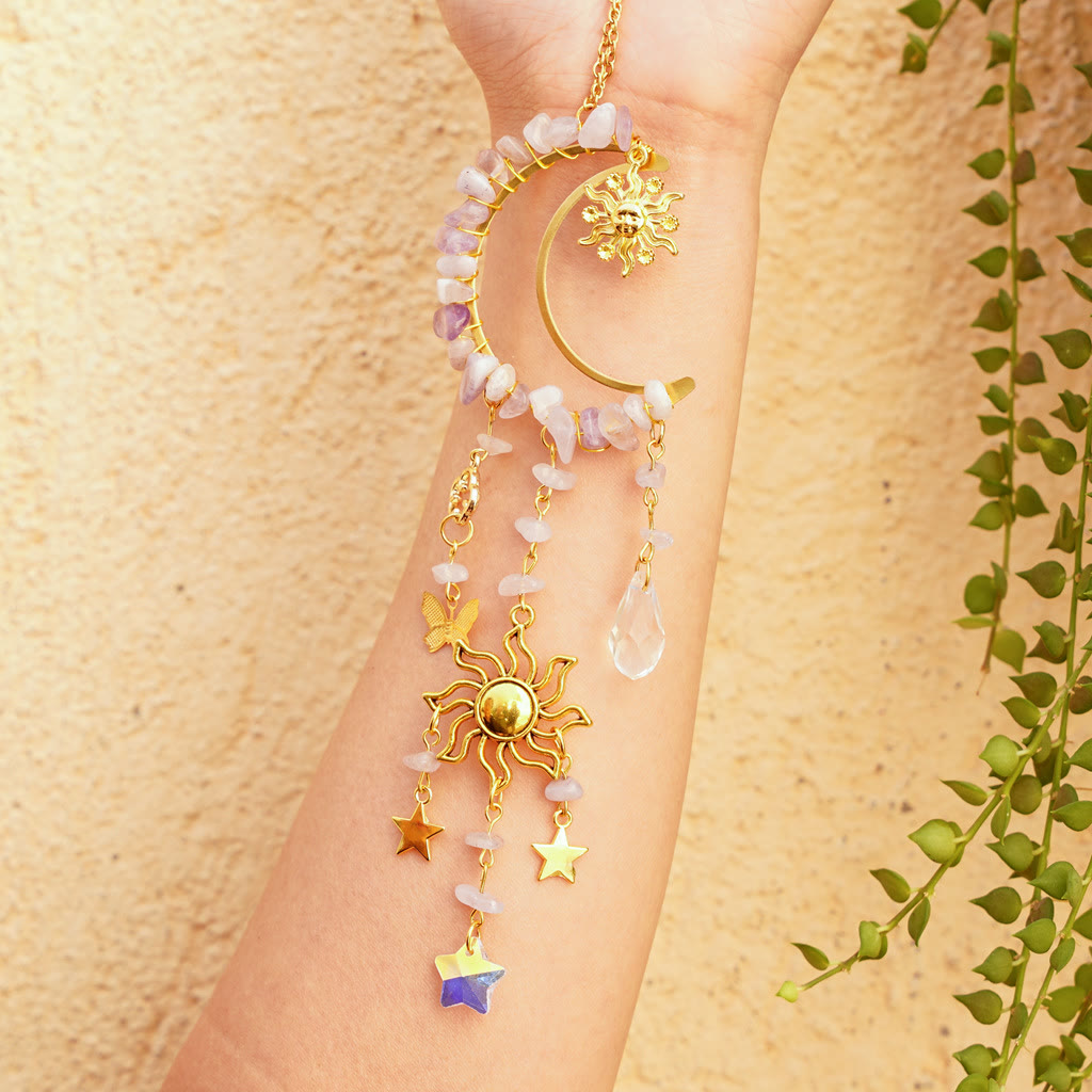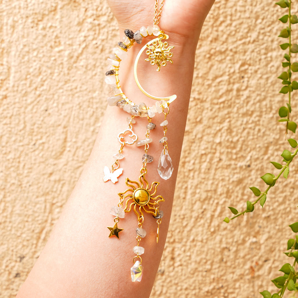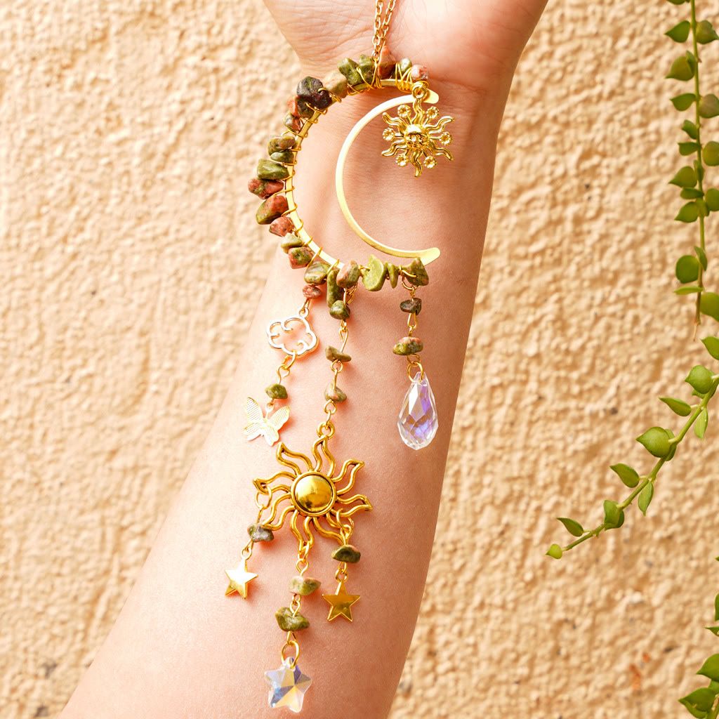 • Name: Olivenorma Natural Crystal Gravel Moon Suncatcher Wind Chime