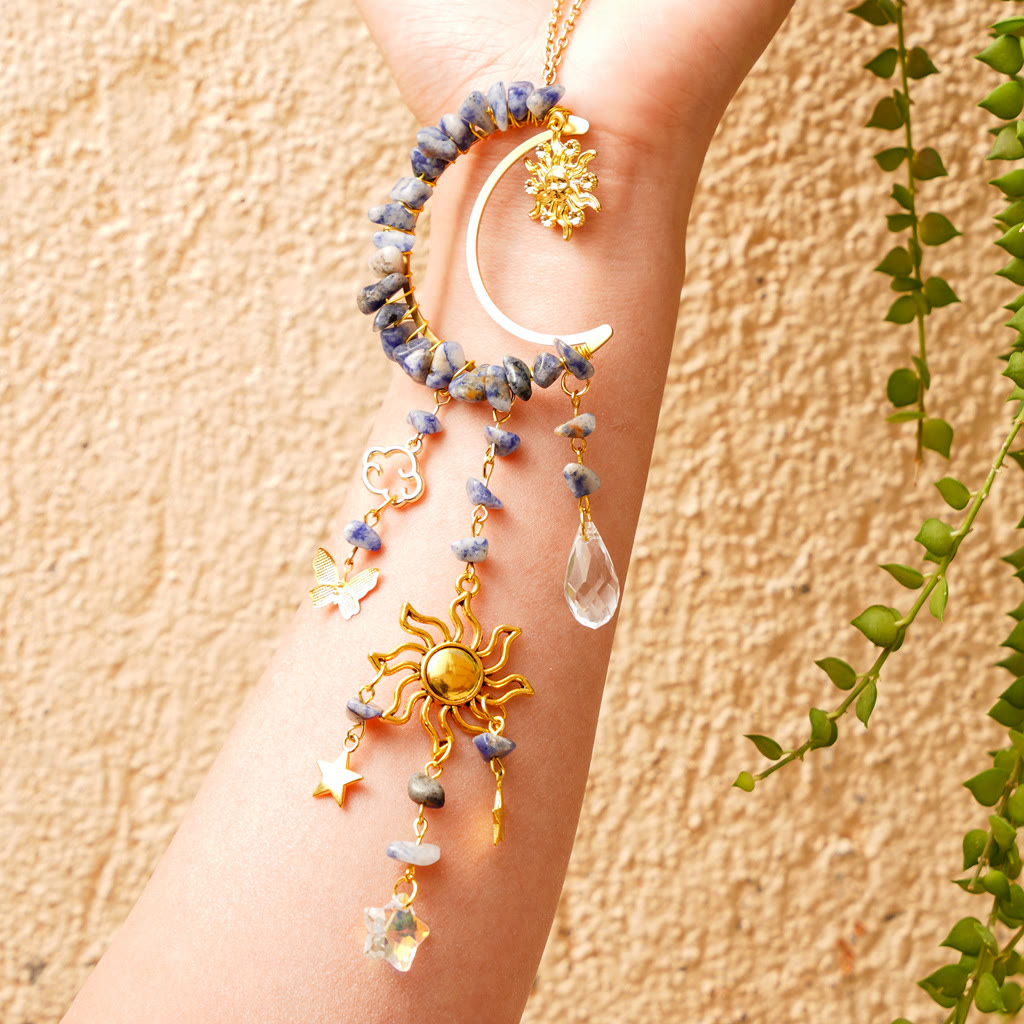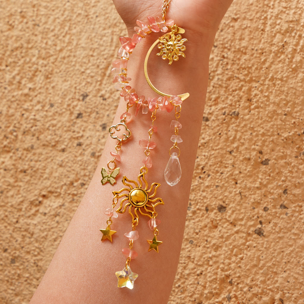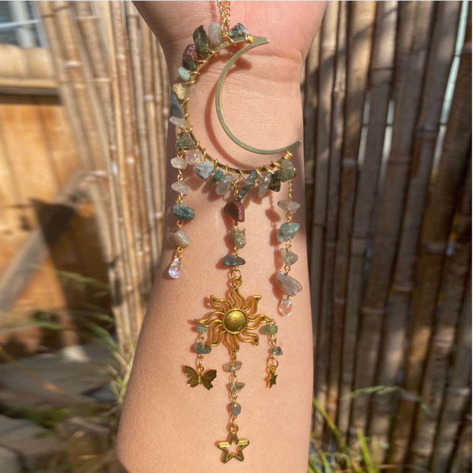 • Name: Olivenorma Natural Crystal Gravel Moon Suncatcher Wind Chime