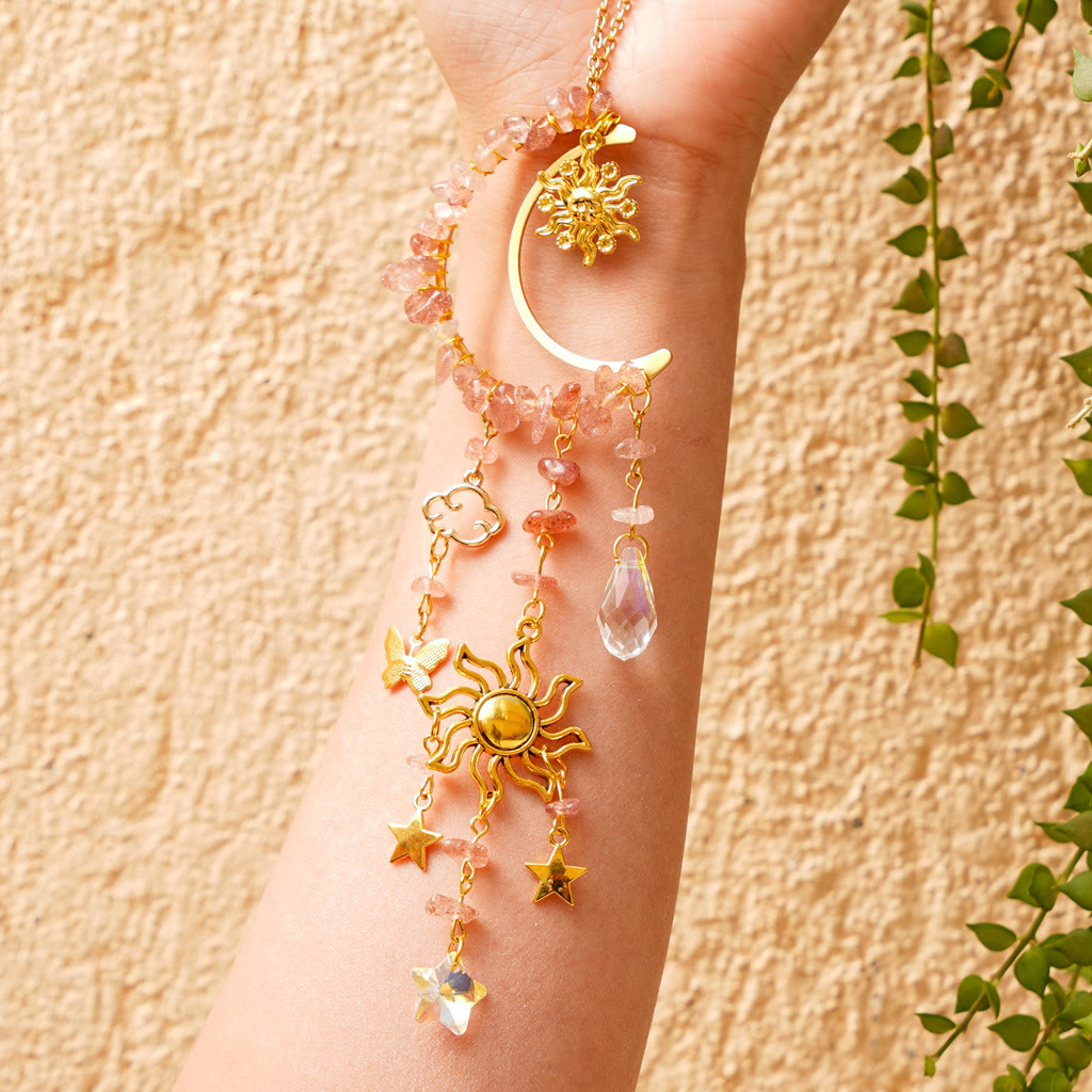 Olivenorma Natural Crystal Gravel Moon Suncatcher Wind Chime