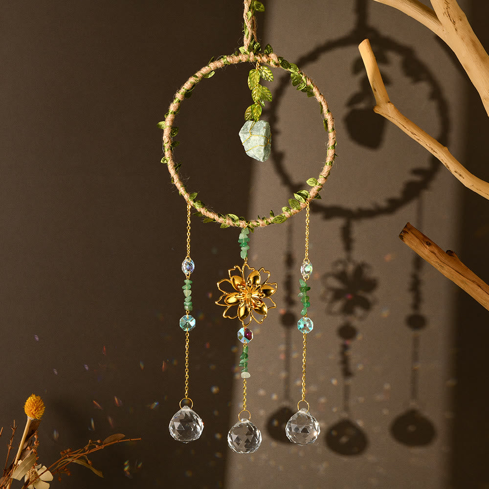Olivenorma Natural Crystal Vine Ring Lotus Wind Chime