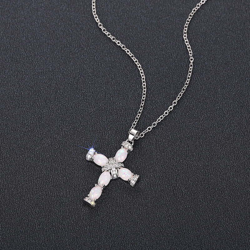 - Name: Olivenorma Natural Fire Opal Cross Pendant Necklace