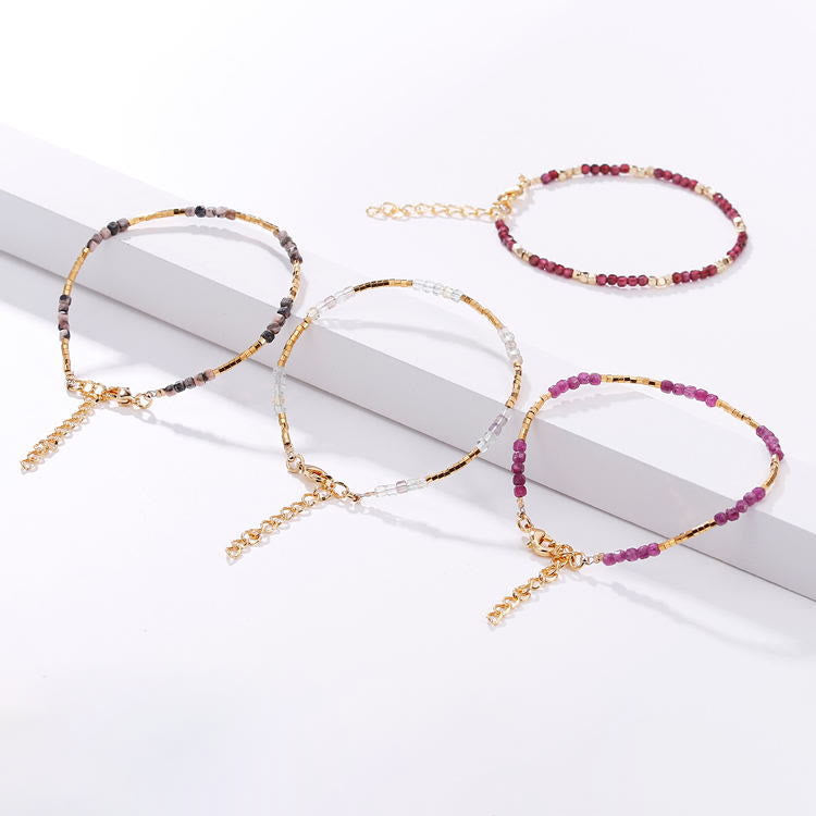 - Material: Apatite,Blue Apatite,Clear Quartz,Garnet,Gold Rutilated Quartz,Labradorite,Malachite,Plum Tourmaline,Rainbow Fluorite,Rhodochrosite,Rose Quartz,Ruby Zoisite,Strawberry Quartz,Sun Stone,Pink Tourmaline,Rainbow Tourmaline,黑尖晶石,彩虹电气石,摩根石