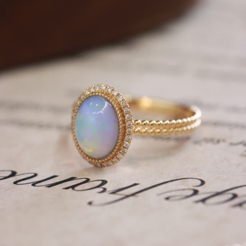 - Name:Olivenorma Oval Cut Colorful Opal With Diamonds Ring