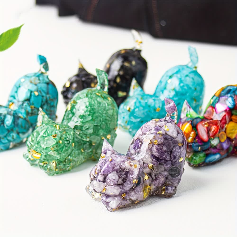 - Each cat is handcrafted from radiant gemstones like Amethyst, Aquamarine, and Fluorite, each resonating with love, intuition, and serenity. Amethyst enhances calm focus, while Aquamarine promotes courage and emotional clarity.