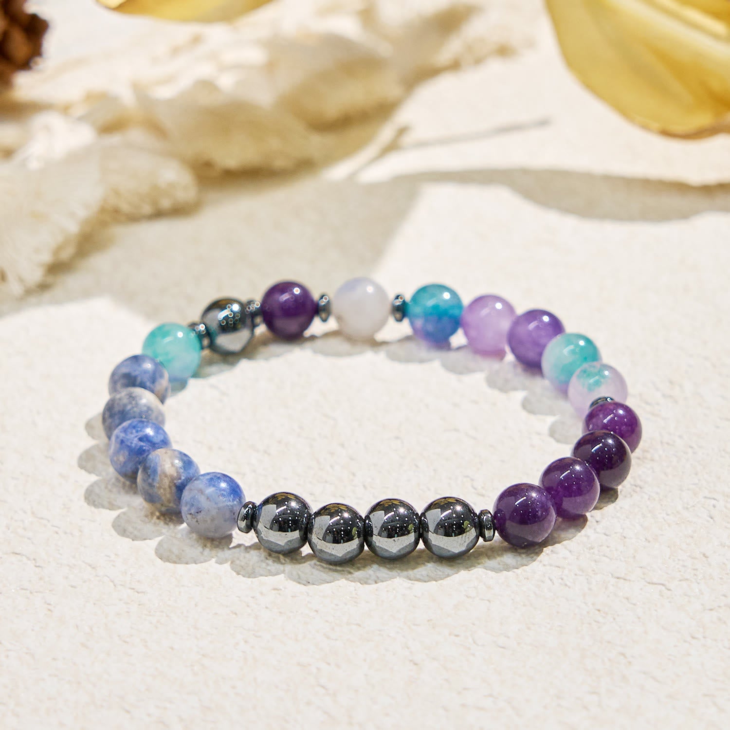 Sodalite sharpens intuition, Hematite deflects negativity, Amethyst nurtures serenity, and Fluorite sparks creative renewal. Together, they form a tactile mantra—smooth stones warm against your pulse, whispering resilience.