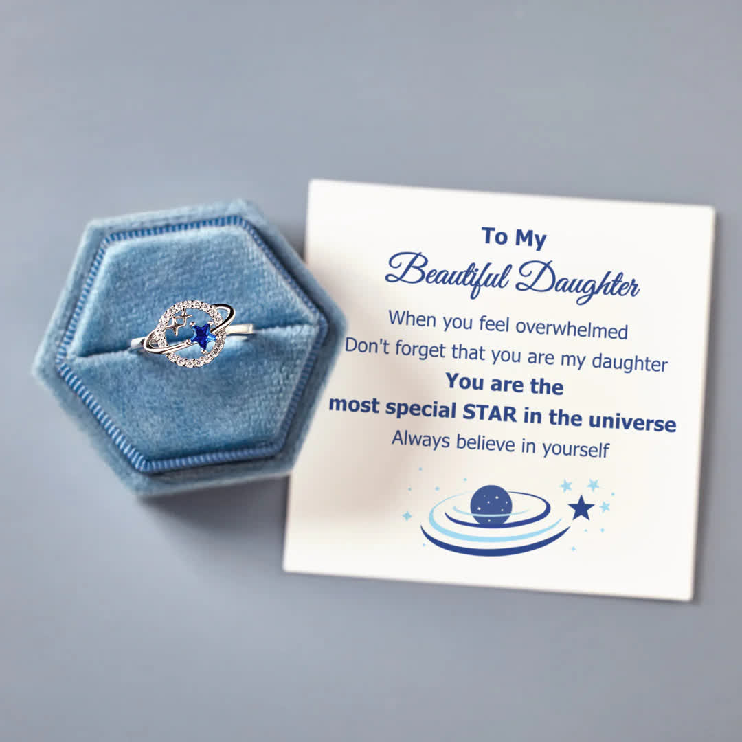 🌌 Designed with a shimmering blue zircon star orbiting within a delicate planetary ring, this celestial-themed ring is a radiant reminder that your daughter or granddaughter is the brightest light in your universe. It captures the magic of space and the unshakable bond between loved ones.