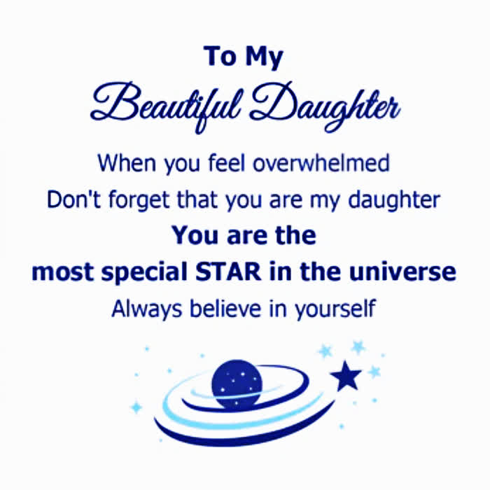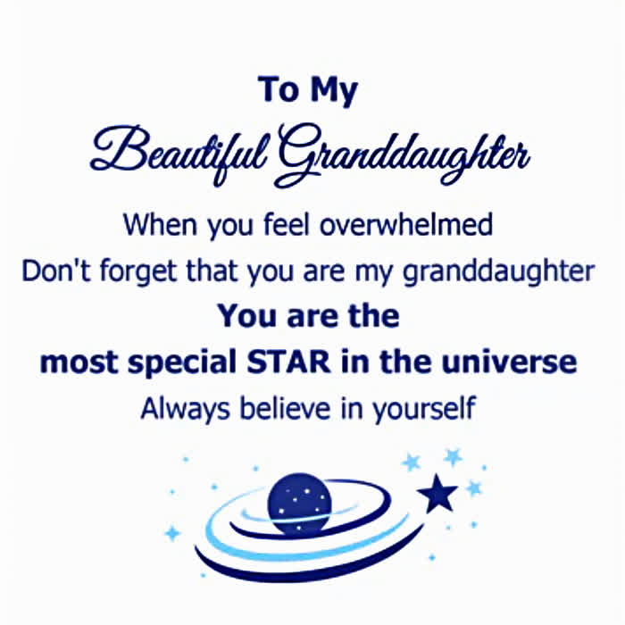 When you feel overwhelmed. Don't forget that you are my daughter/grandaughter. You are the most special STAR in the universe. Always believe in yourself”