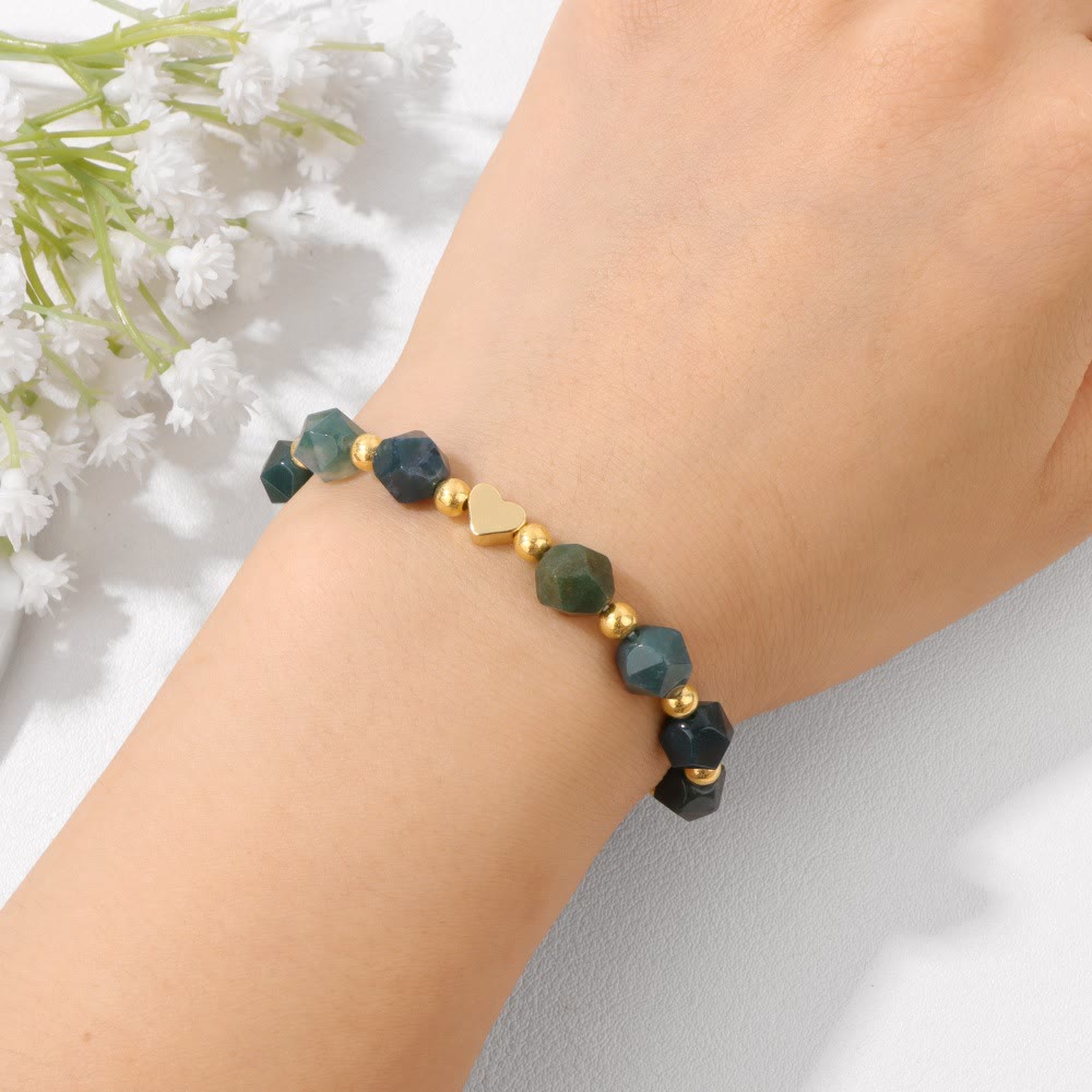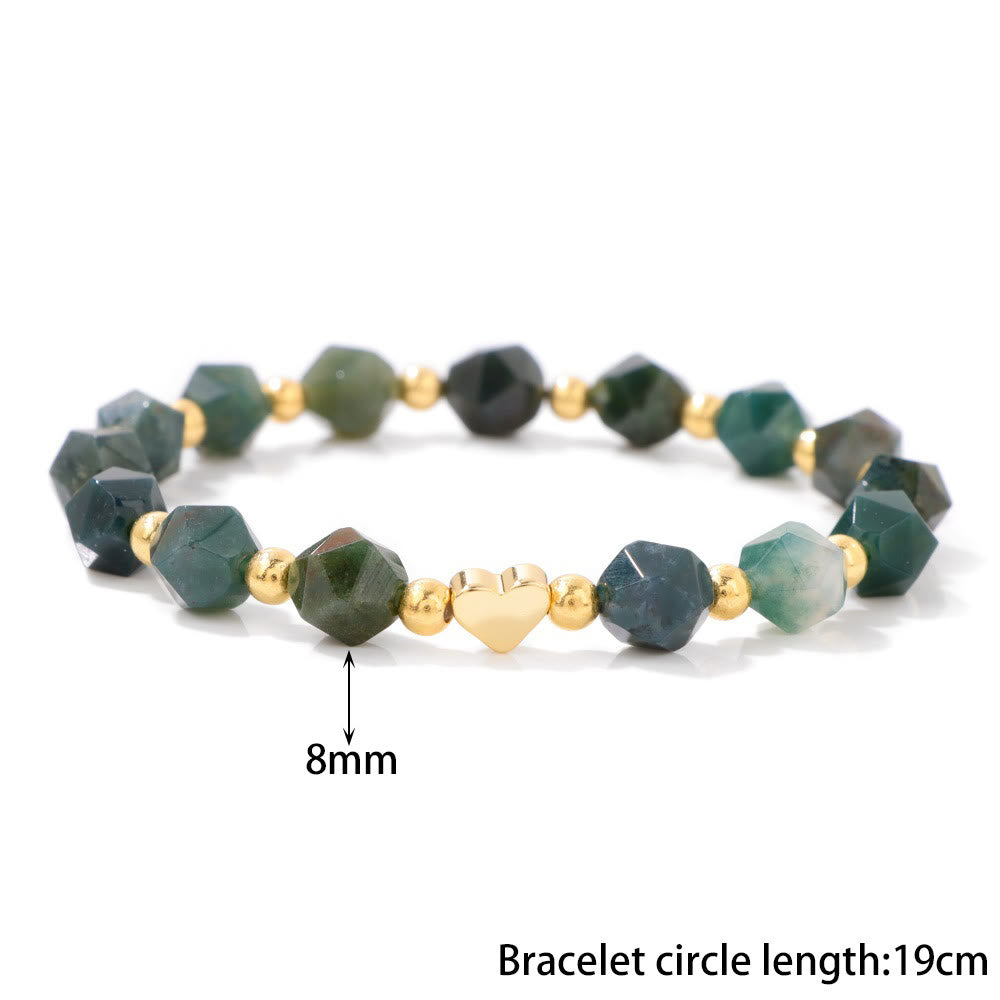 Olivenorma 8mm Facted Gemstone Heart Beaded Bracelet