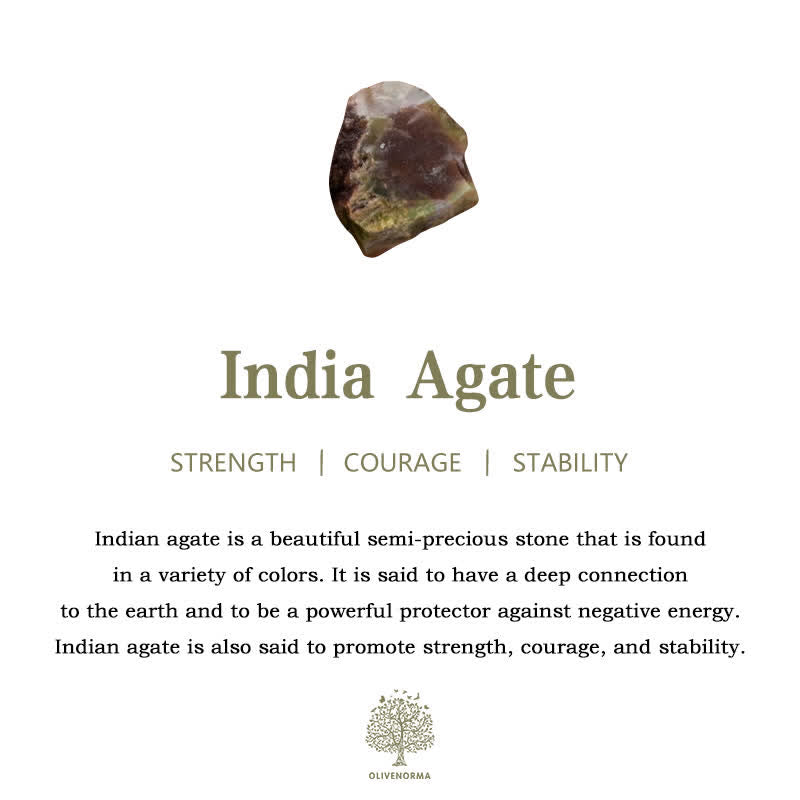 Indian agate is a beautiful semi-precious stone that is found in a variety of colors. It is said to have a deep connection to the earth and to be a powerful protector against negative energy. Indian agate is also said to promote strength, courage, and stability.