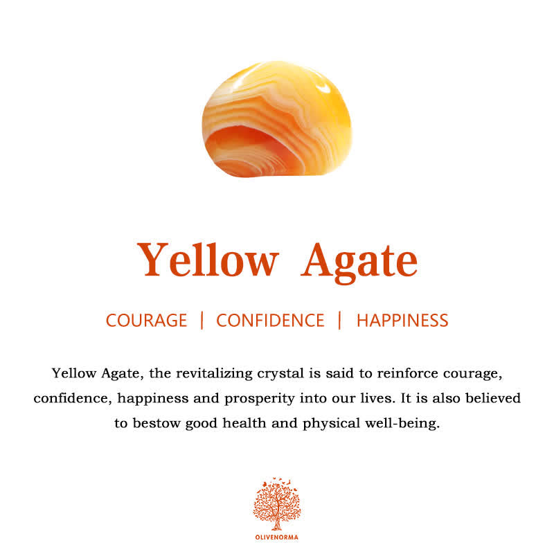Yellow Agate, the revitalizing crystal is said to reinforce courage, confidence, happiness and prosperity into our lives. It is also believed to bestow good health and physical well-being.
