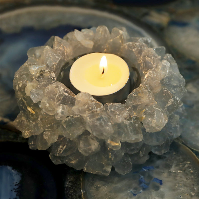 Natural Aquamarine candle holder is carefully crafted from genuine aquamarine, a stone known for its calming and emotionally balancing properties. This unique design merges the crystal’s serene energy with the soft glow of candlelight, fostering tranquility and clarity in any space. Perfect for meditation or relaxation, this piece promotes emotional balance, spiritual focus, and a sense of inner peace, making it a meaningful addition to mindful spaces.