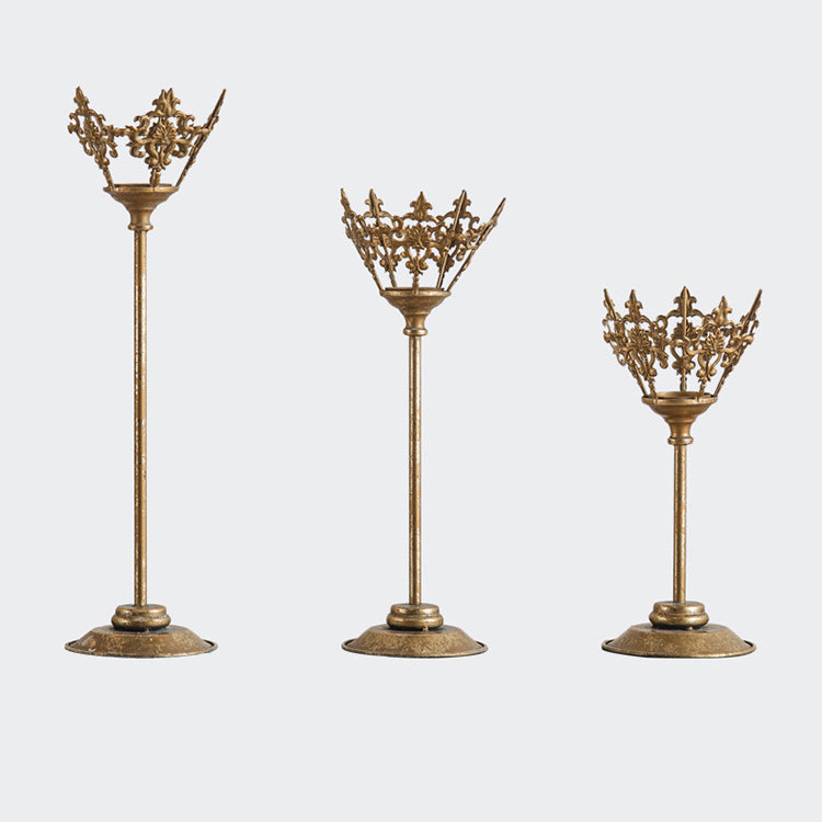 This iron art candle holder captures the essence of regal splendor with its crown-like design, reminiscent of the opulence found in European palaces. Crafted with precision, it stands as a symbol of heritage and sophistication, making it an ideal adornment for spaces seeking a touch of royal elegance.