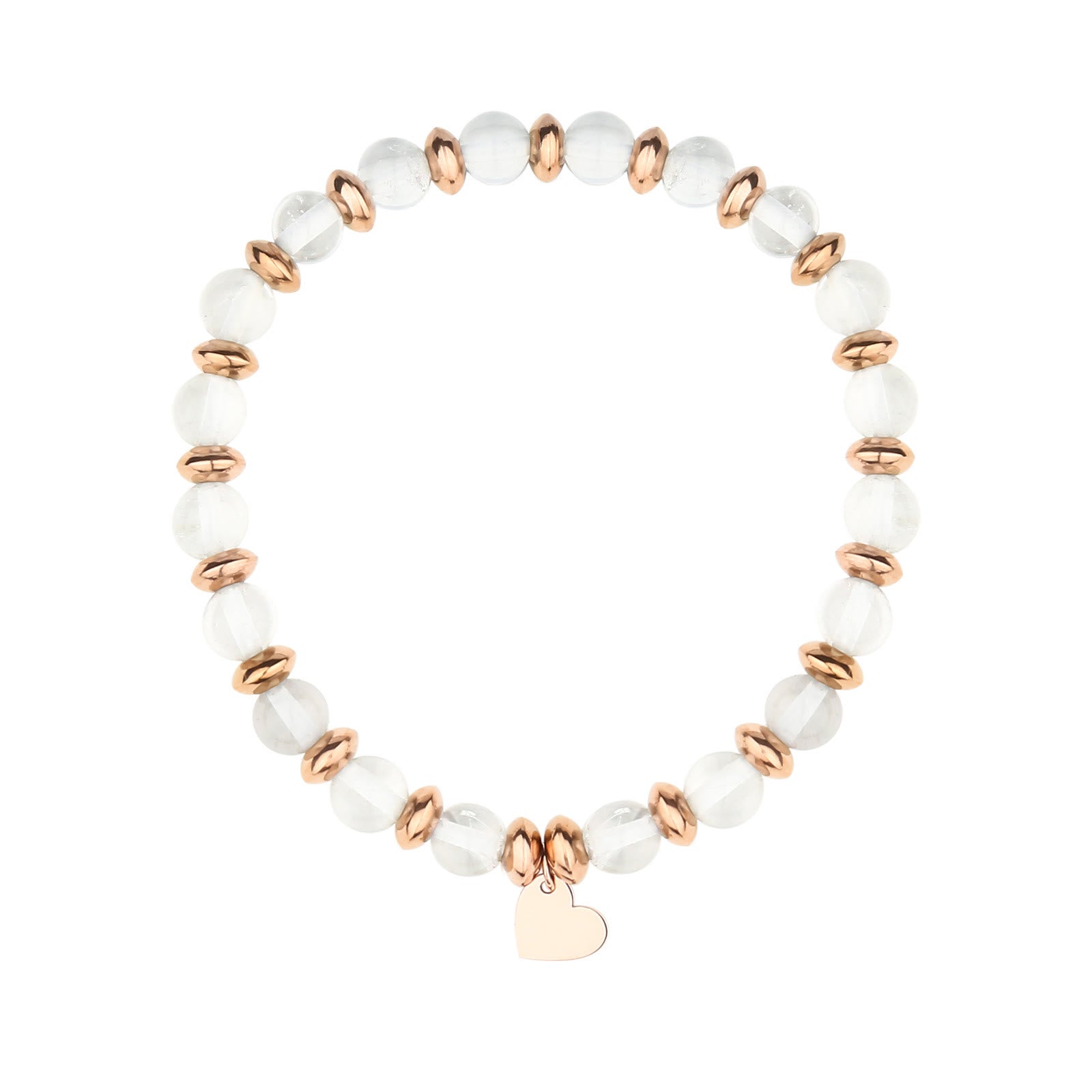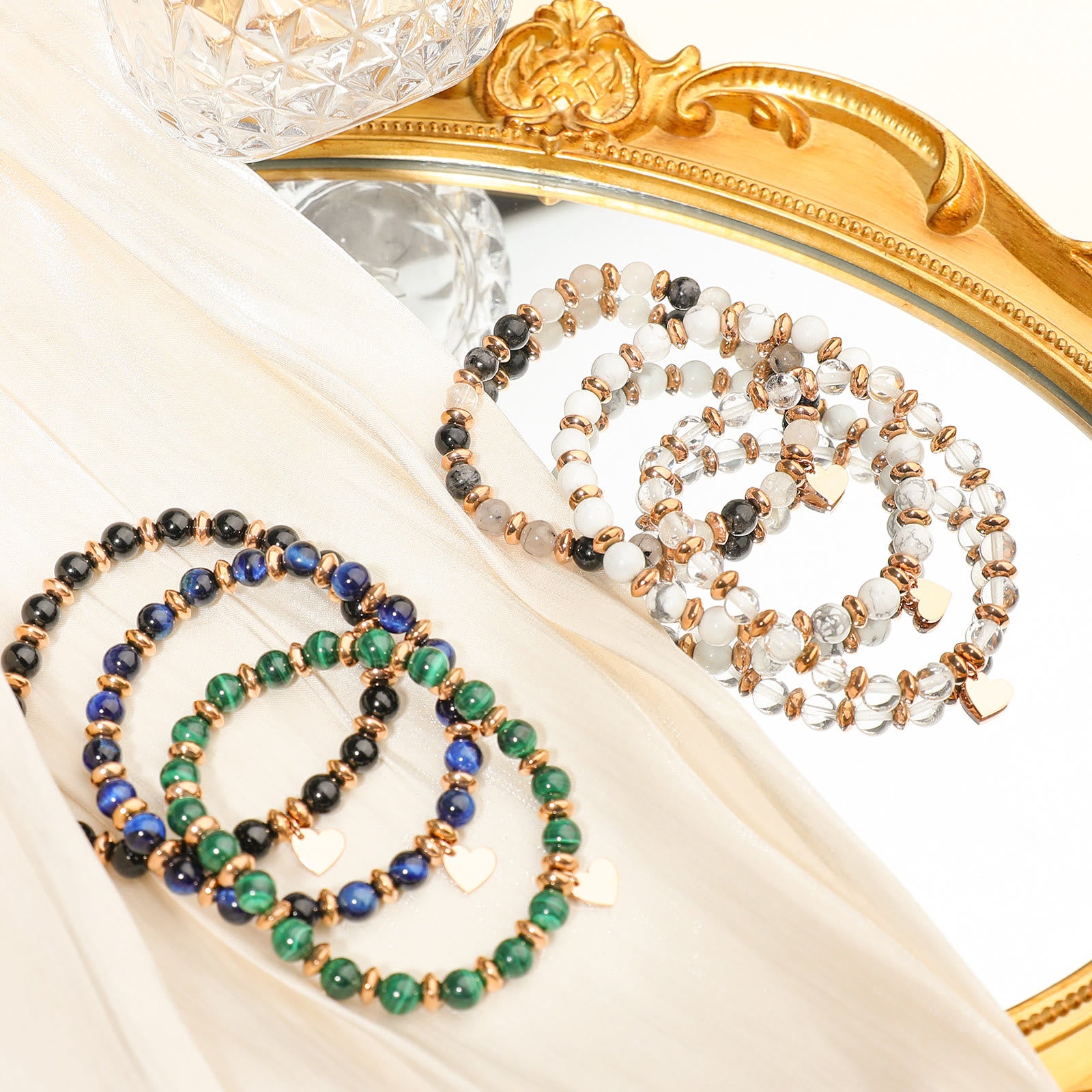 Name: Olivenorma Natural Crystal Beaded Metal Heart Piece Pendant Bracelet