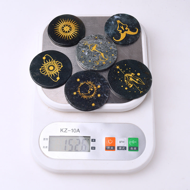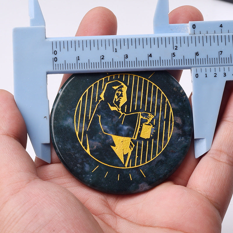 Crystal Moss Agate Disc pendant merges the serene essence of nature with Moss Agate's grounding benefits. Ideal for fostering personal growth and emotional equilibrium, its design symbolizes nature's unending cycle of renewal. This accessory decoration, not just an adornment, is a tool for inviting peace and prosperity into one's life.