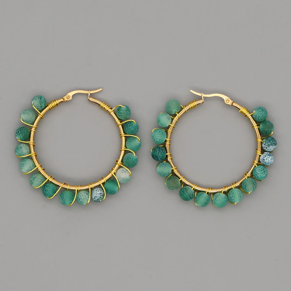 Olivenorma Boho Natural Crystal Beads Large Hoop Earrings
