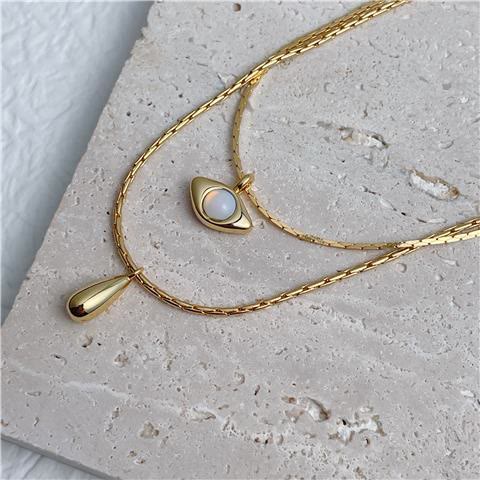 - Name: Olivenorma Opalite Evil Eye Pendant Double Layer Necklace