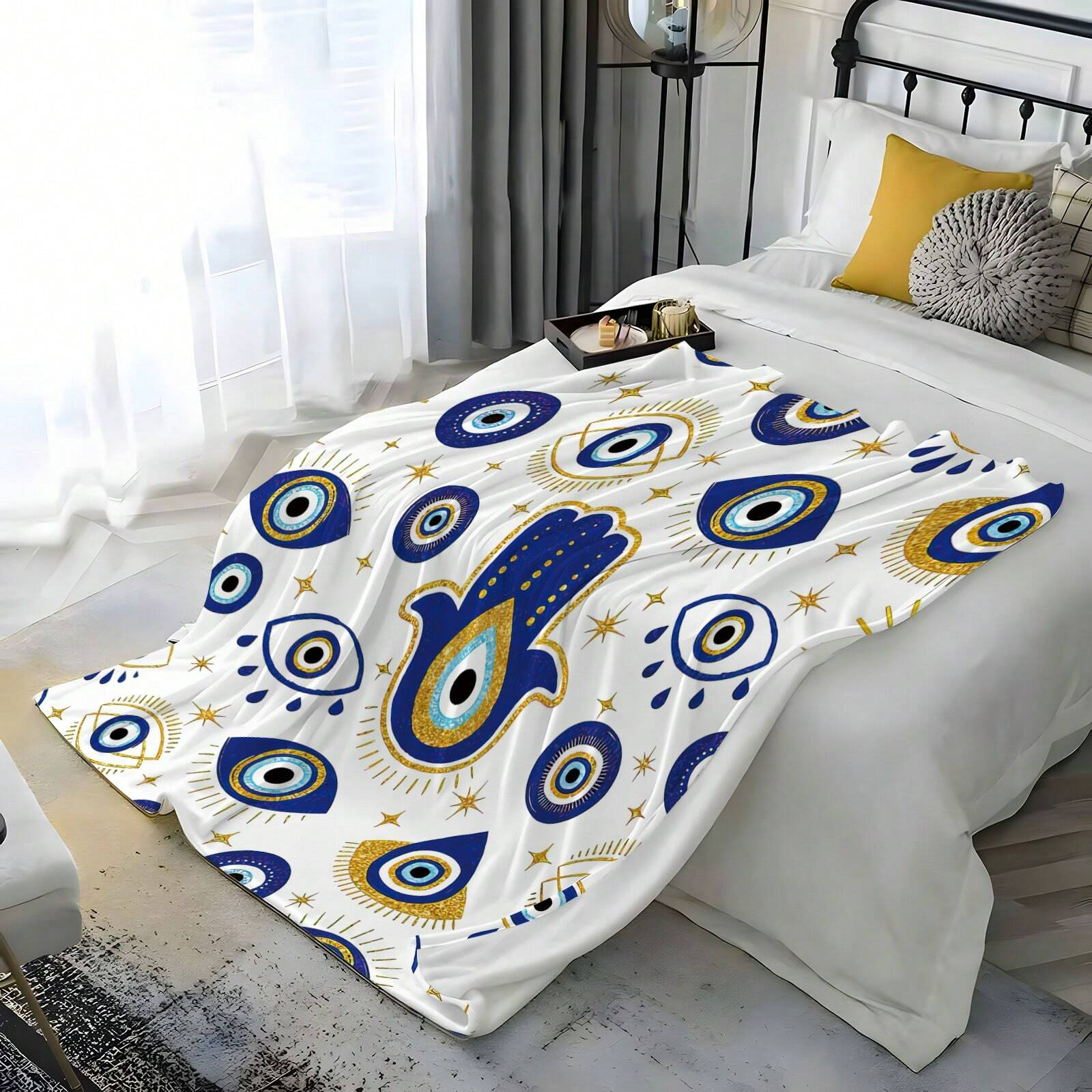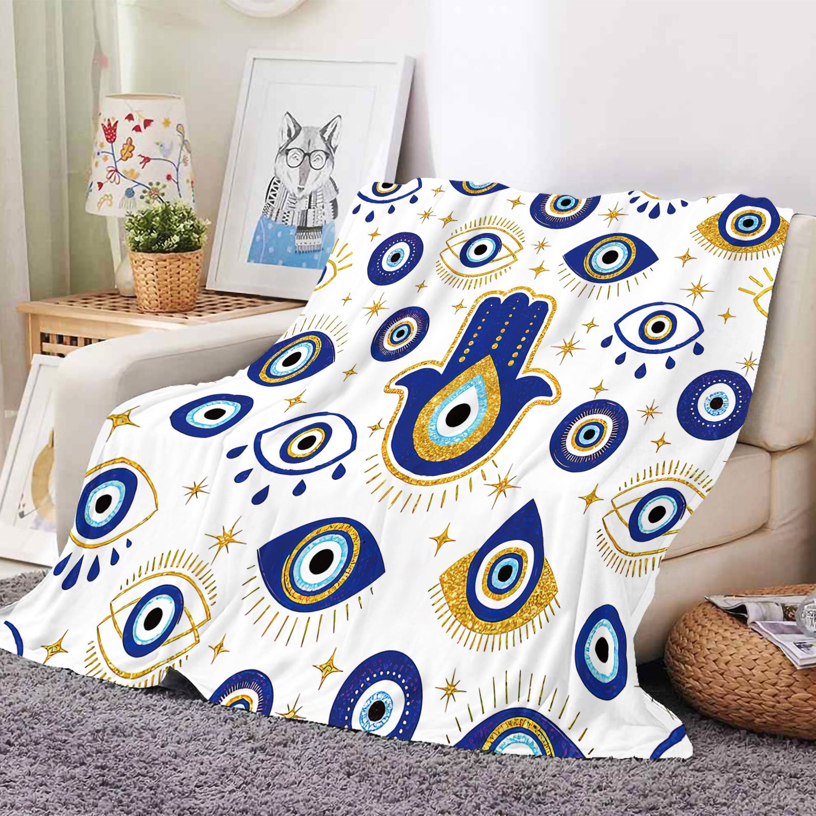 - Name: Olivenorma White Blue Evil Eye Hamsa Flannel Woven Blanket