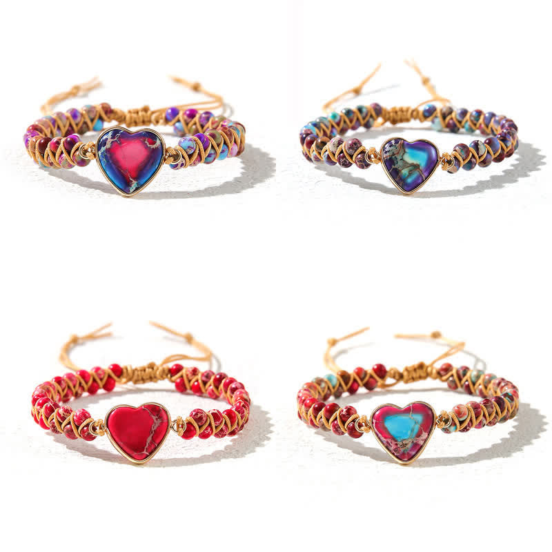 Heart Emperor Stone Braided bracelet combines a beautiful gemstone heart pendant with matching beads, crafted from emperor stone or other crystal options. These stones are known for their healing properties, helping to promote emotional balance, love, and spiritual alignment. The braided design offers both security and symbolism, making this bracelet a powerful tool for grounding, attracting positivity, and supporting inner peace.