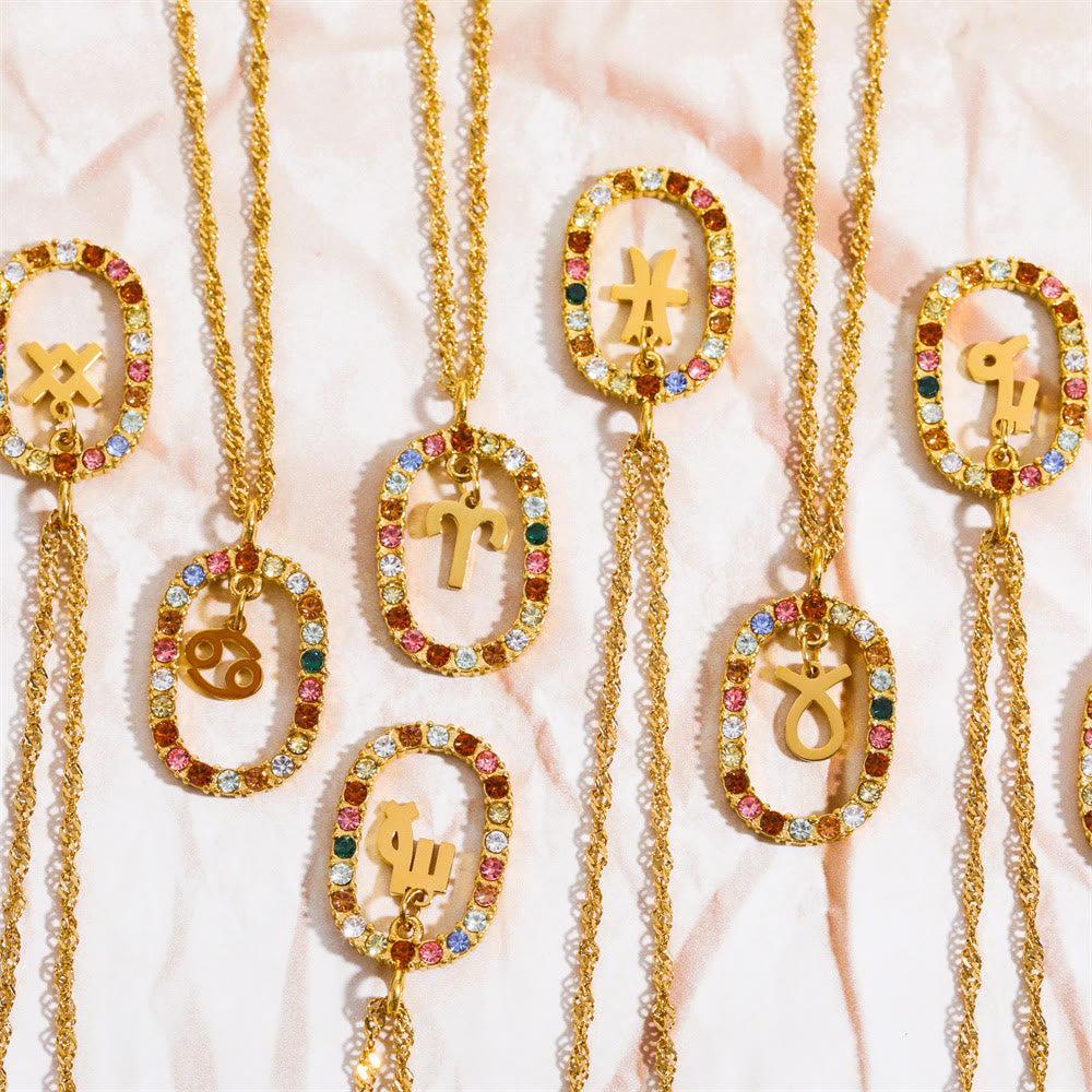 - Name: Olivenorma Zircon Openwork Oval Constellation Zodiac Necklace