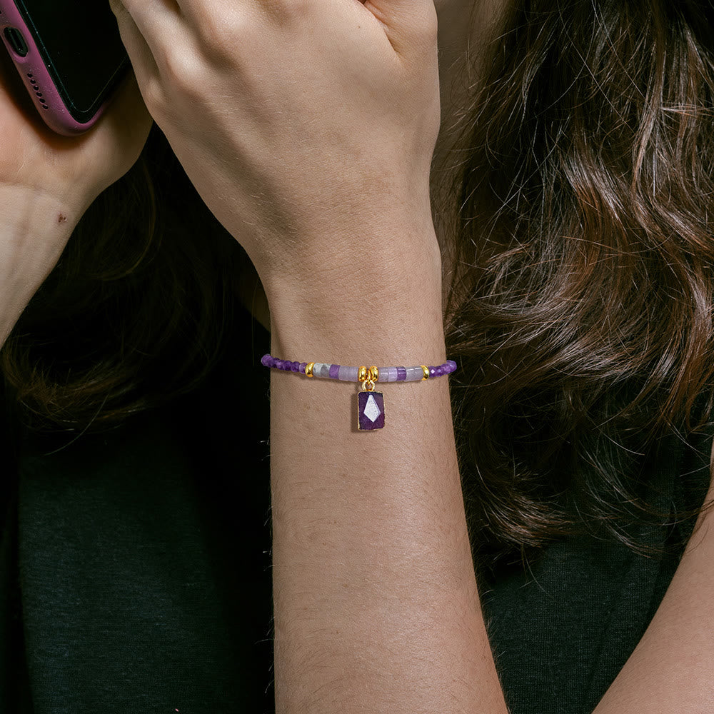 Olivenorma 3mm Natural Stone Beads Square Pendant Bracelet