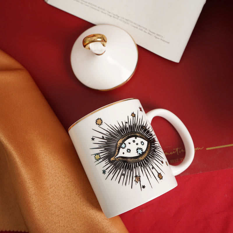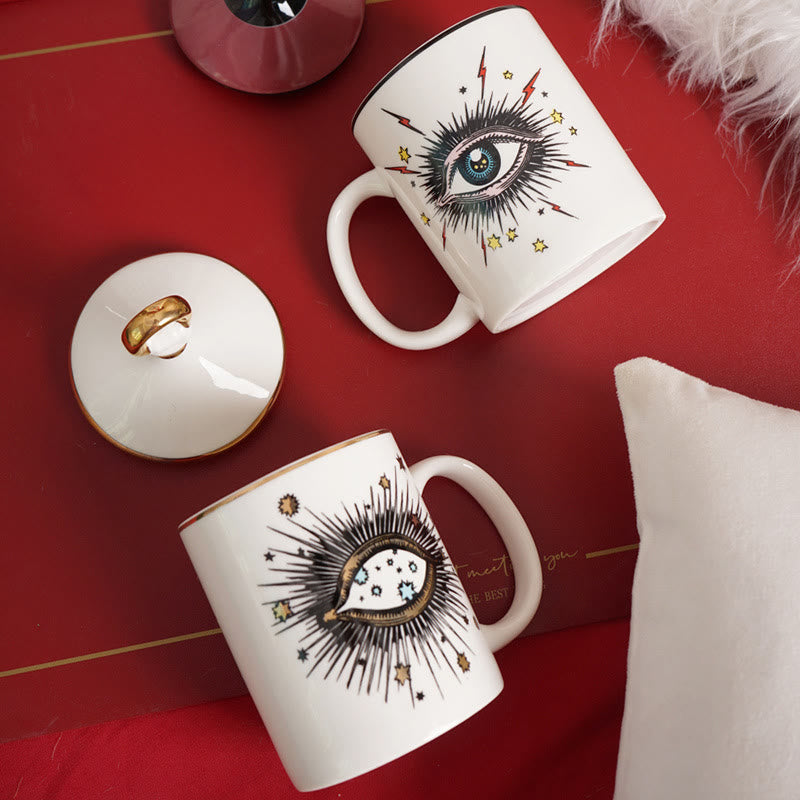 Creative Evil Eye cup with Lid blends functionality and symbolism. Featuring a distinct Evil Eye symbol, this ceramic cup includes a matching lid to keep your beverages warm and protected. The durable ceramic material ensures long-lasting use, while the lid provides added convenience. Ideal for those seeking both aesthetic appeal and spiritual security in their daily routine.