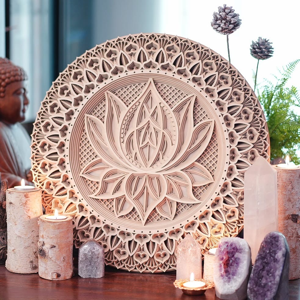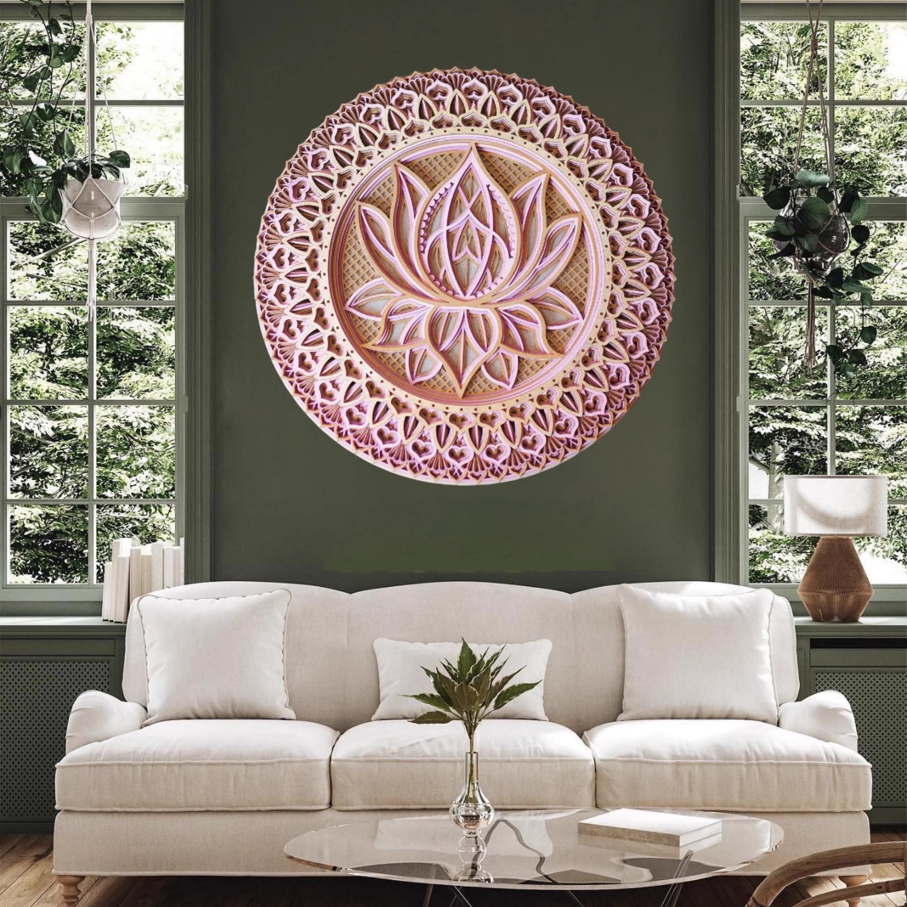 - Name: Olivenorma Pink Lotus Mandala 3D Engraving Wall Decor