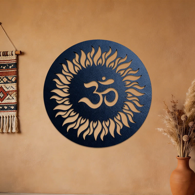 Crafted from premium durable metal with precision laser-cut craftsmanship, this wall art boasts sharp, clean lines that bring every sunburst ray and Om symbol detail to life. The sleek, matte black finish creates a striking visual contrast against any wall, while the layered silhouette design casts subtle, dynamic shadows that shift with natural light, adding depth, dimension, and artistic movement to your space. Built to resist fading, rust, and wear, it retains its stunning appearance for years, making it a lasting spiritual centerpiece for your home.