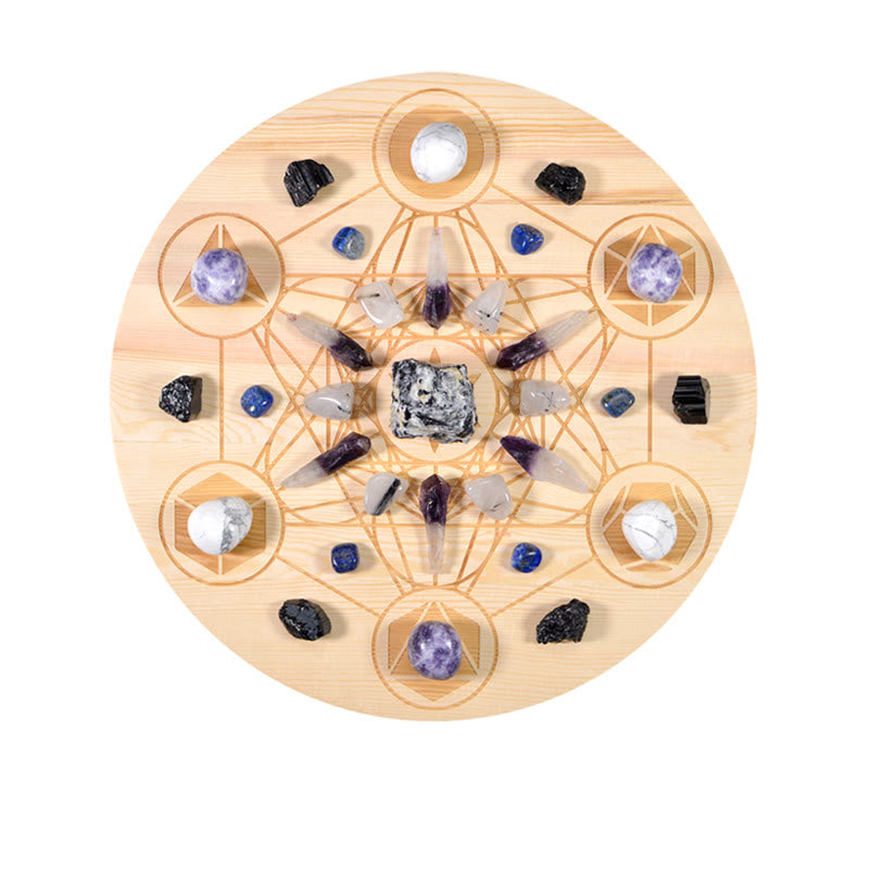 - MANIFESTATION: By arranging crystals with intention, the user aims to amplify their thoughts and turn their wishes into reality.