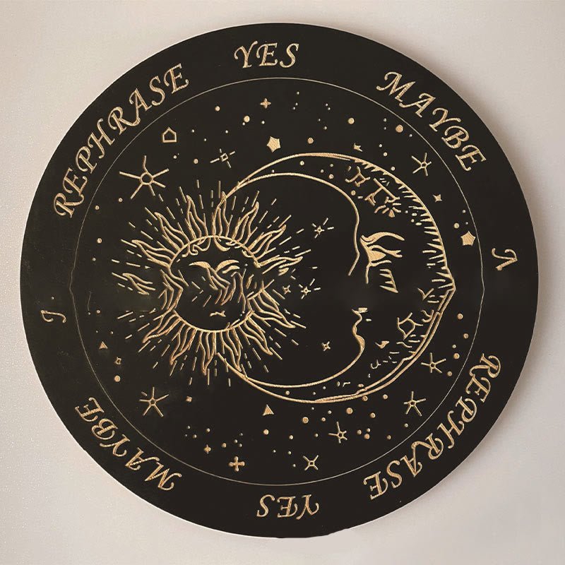 Talking Bowsing energy board is designed for dowsing, divination, and spiritual guidance. Crafted from natural wood, the board features intricate designs that support energy flow and intuitive practices. The pendulum complements the board, enhancing focus during meditation and spiritual work. (The pendulum needs to be purchased separately)