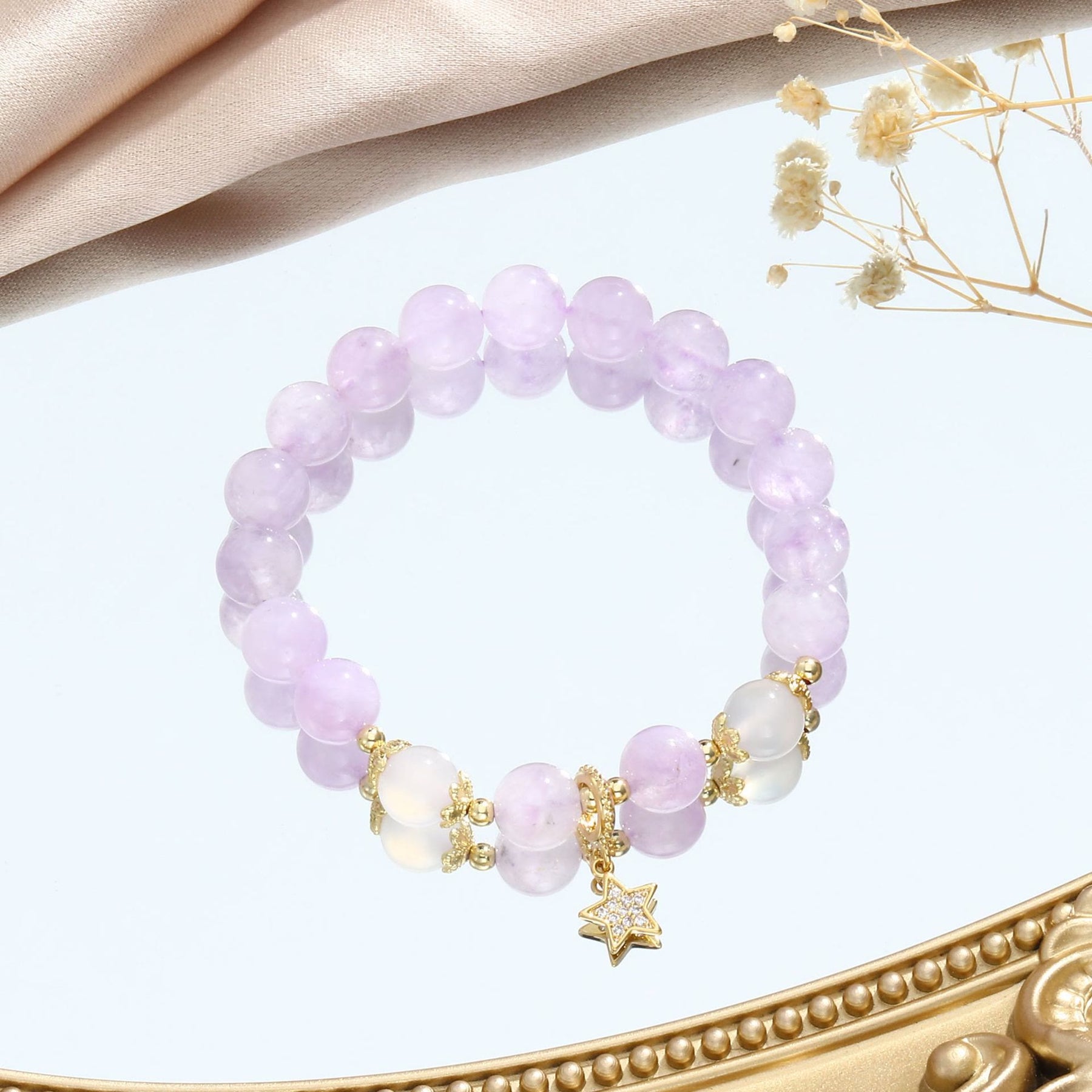 Name: Olivenorma Purple Jade White Agate Beaded Star Moon Bracelet