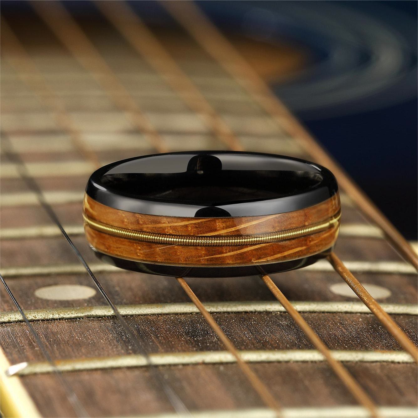 - Name: Olivenorma Guitar String Whiskey Barrel Wood Black Tungsten Carbide Ring