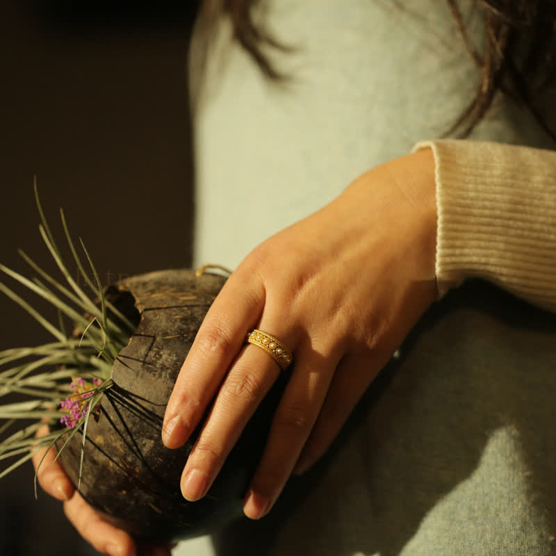 Olivenorma Pearl Delicate Open Adjustable Ring