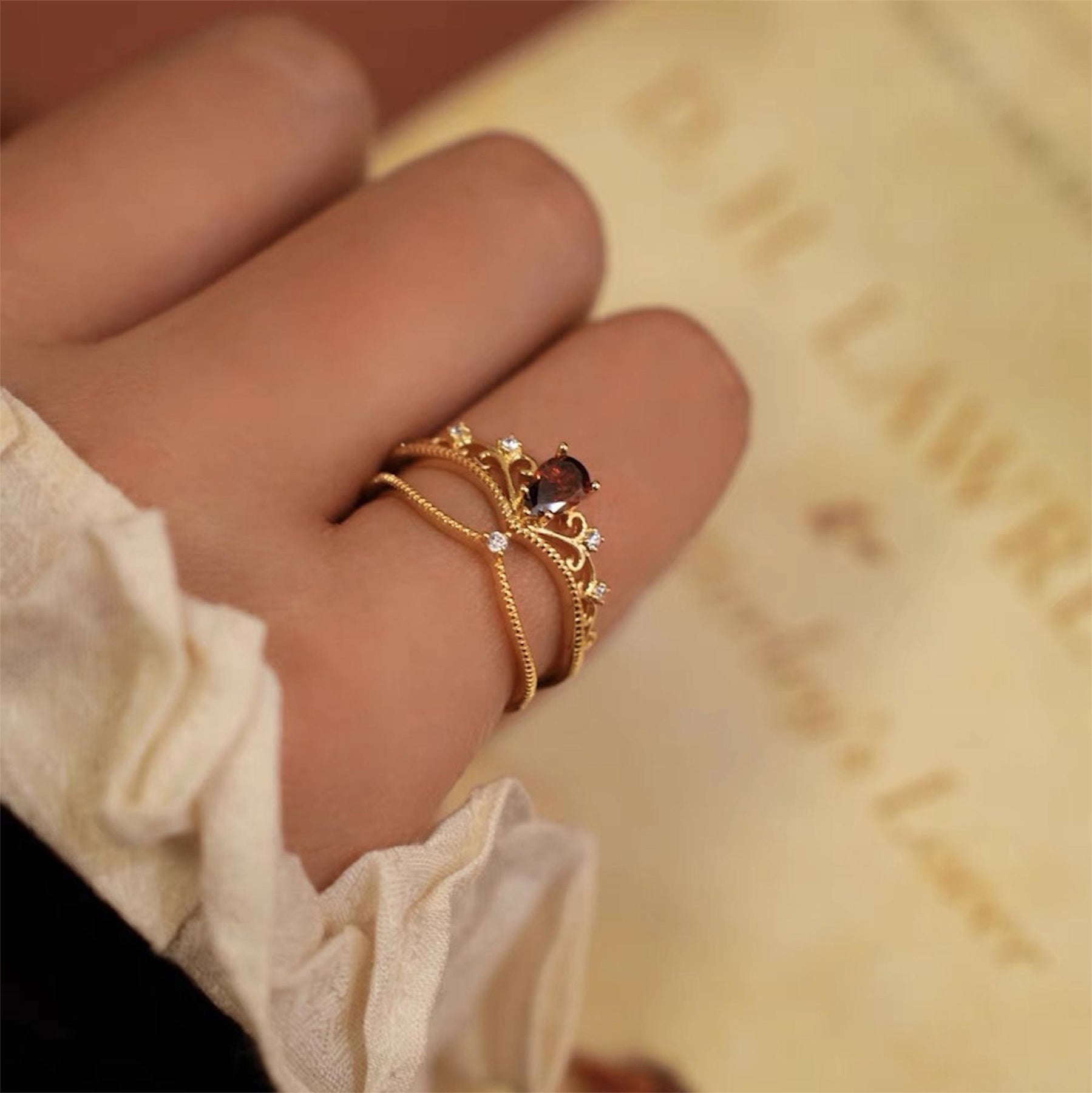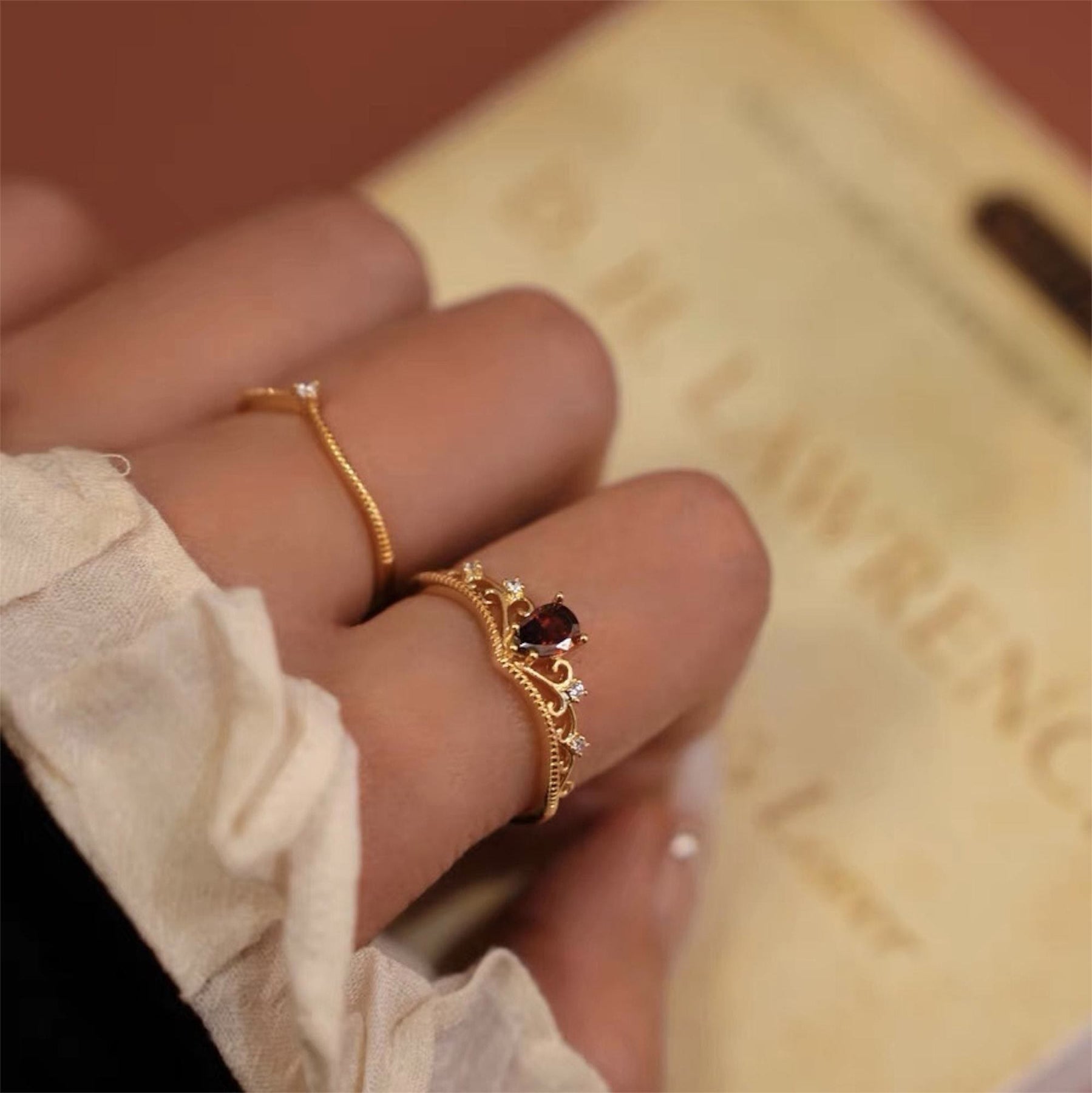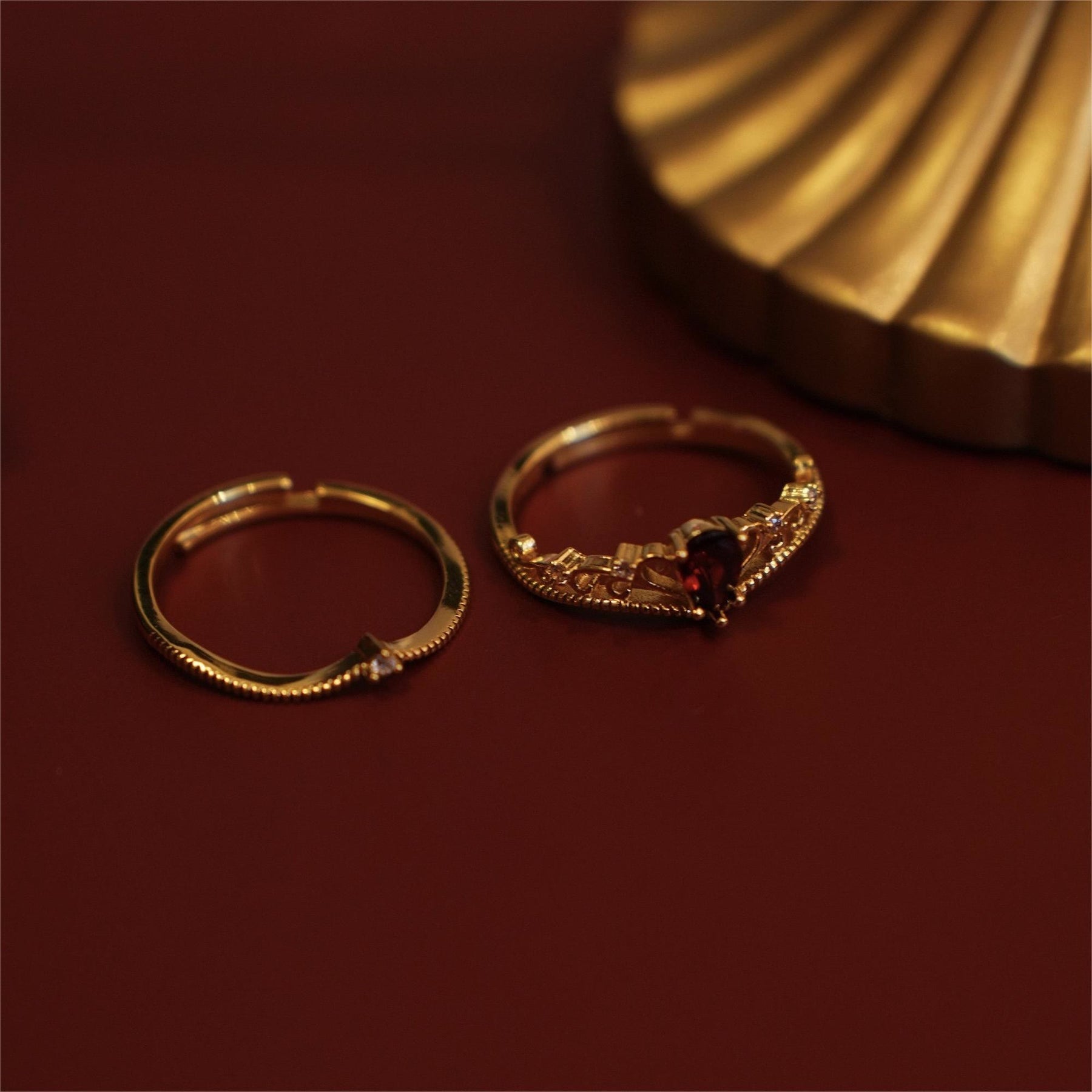 - Name: Olivenorma Red Garnet Crown Stackable Adjustable Ring Set