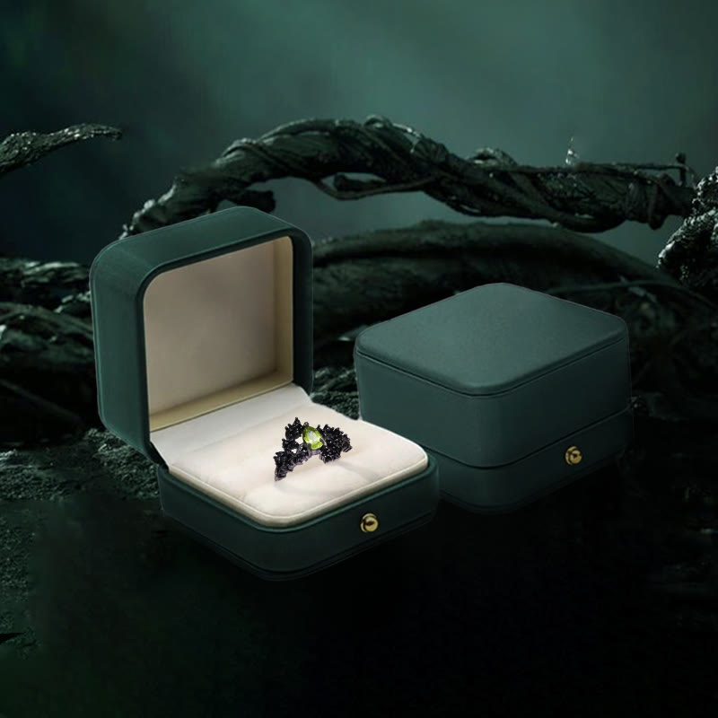 This "Aphrodite's Bloom", with its dazzling green gem—Peridot—at its heart, is said to be a divine teardrop shed by the goddess over the loss of her beloved. Symbolizing strength and eternity, the black obsidian was masterfully shaped by skilled artisans into resilient yet gracefully winding vine-like branches. These branches intimately, as if imbued with life itself, elegantly twine around, protect, and lift this precious "flower's heart".