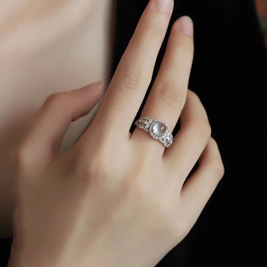- Name: Olivenorma Elegant Gray Moonstone Inlaid Gemstone Solitaire Ring