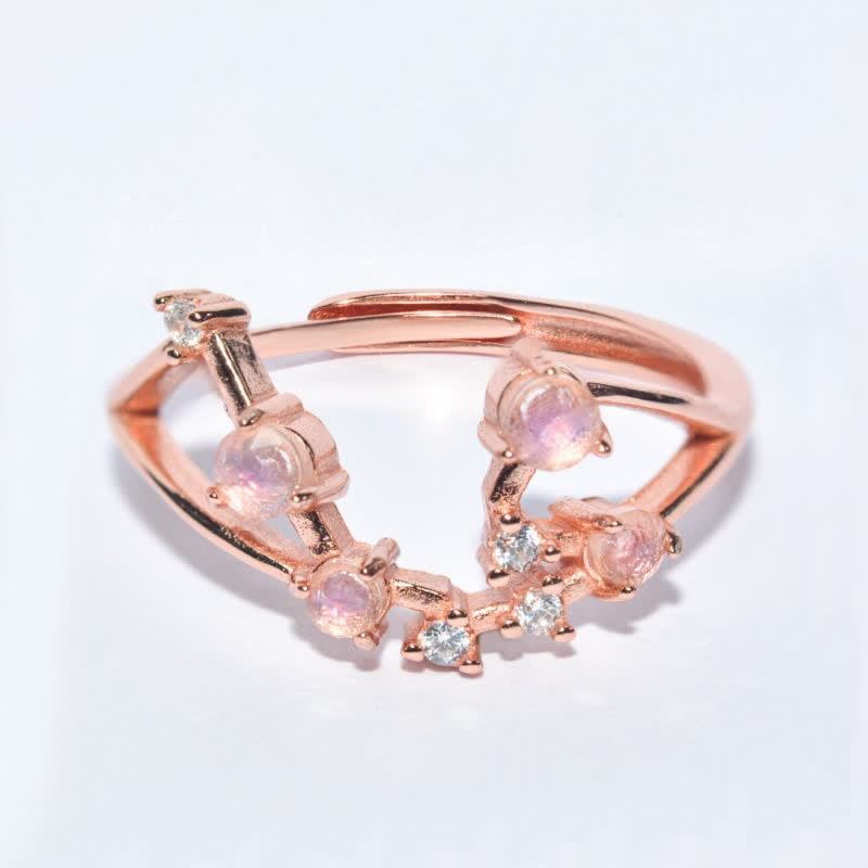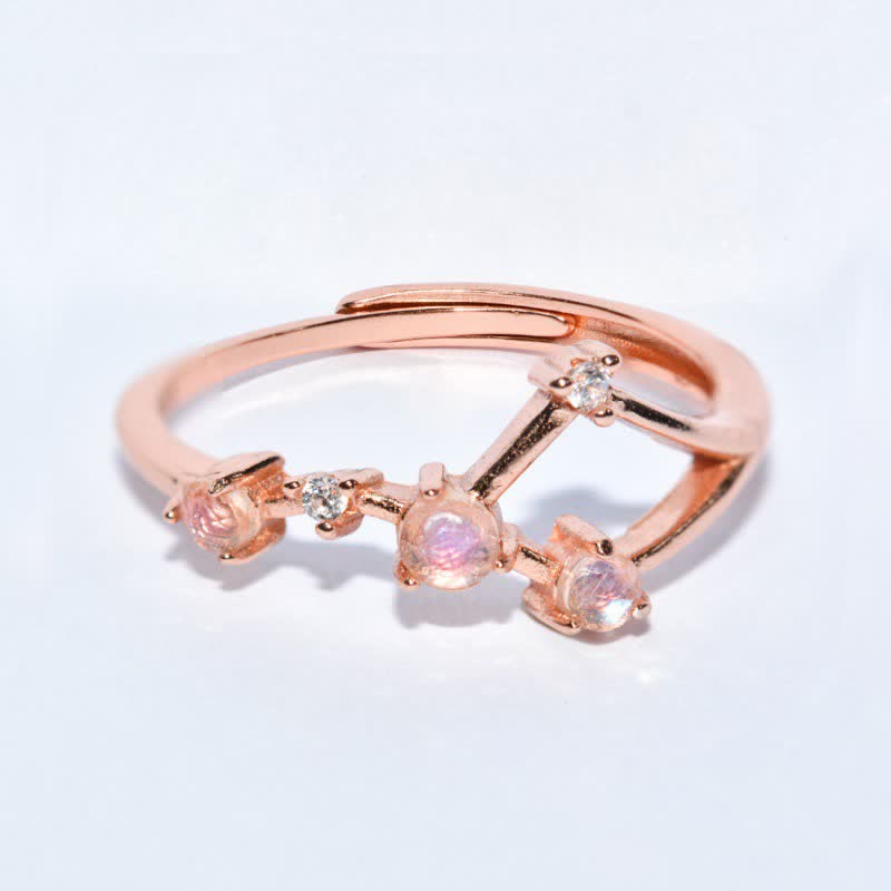 Zodiac ring features a natural moonstone, known for its connection to lunar cycles and feminine energy. The delicate setting showcases your chosen zodiac symbol, adding a personal touch to this meaningful piece. Moonstone can enhance intuition, promote emotional healing, and foster inner growth, making the ring a reminder of your unique astrological connection and a guiding light on your journey.